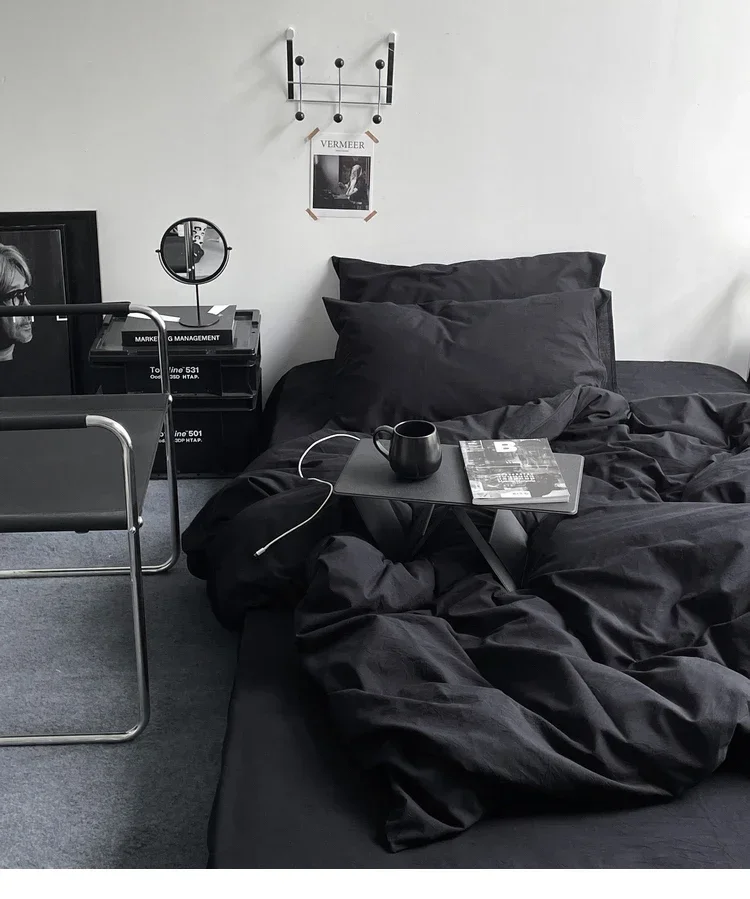 Hot Sale Vasket Bomuld Sort Dyne Sengesæt Blød hudvenlig sort Dynebetræk Sæt Sengebetræk til soveværelse
