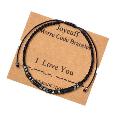 JoycuFF herrearmbånd gaver til kæreste Jeg elsker dig morsekode armbånd til kvinder mænd mors dag unikke fødselsdagsgaver smykke snor viklearmbånd med sorte hematitperler gave til kvinder
