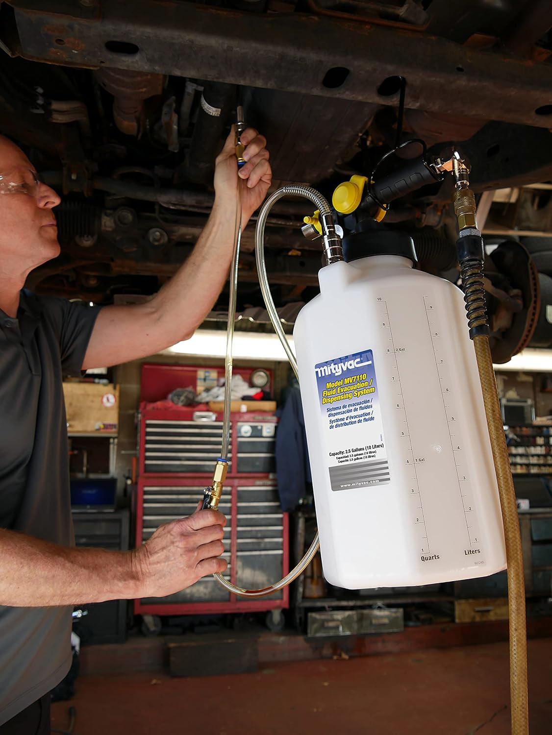 - ALT-I-ÉN VÆSKEUDTRÆKNINGS- OG GENOPFYLDNINGSSYSTEM: Mityvac MV7412 kombinerer et højtydende forseglet system til både udtrækning og genopfyldning af automatisk transmissionsvæske (ATF) og andre bilvæsker. Med en kapacitet på 2,5 gallon (10 liter) er det perfekt til professionelle mekanikere og gør-det-selv-brug.
