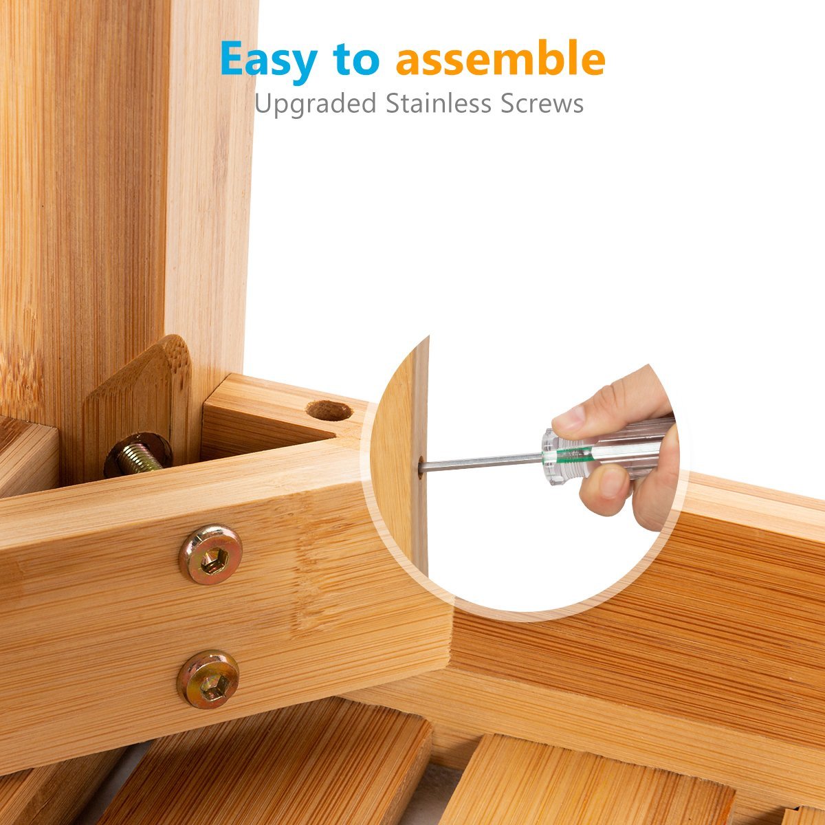 - 𝗣𝗼𝗿𝘁𝗮𝗯𝗹𝗲 & 𝗟𝗲𝗱𝘃𝗶𝗴 𝗮𝘁 𝗠𝗼𝗻𝘁𝗲𝗿𝗲 - Vores brusebænk i bambustræ er lavet i højeste kvalitet solid bambus, robust og holdbar, ser godt ud på badeværelset. Leveres med alle dele og værktøj nødvendigt til montering, tager mindre end 8 minutter.