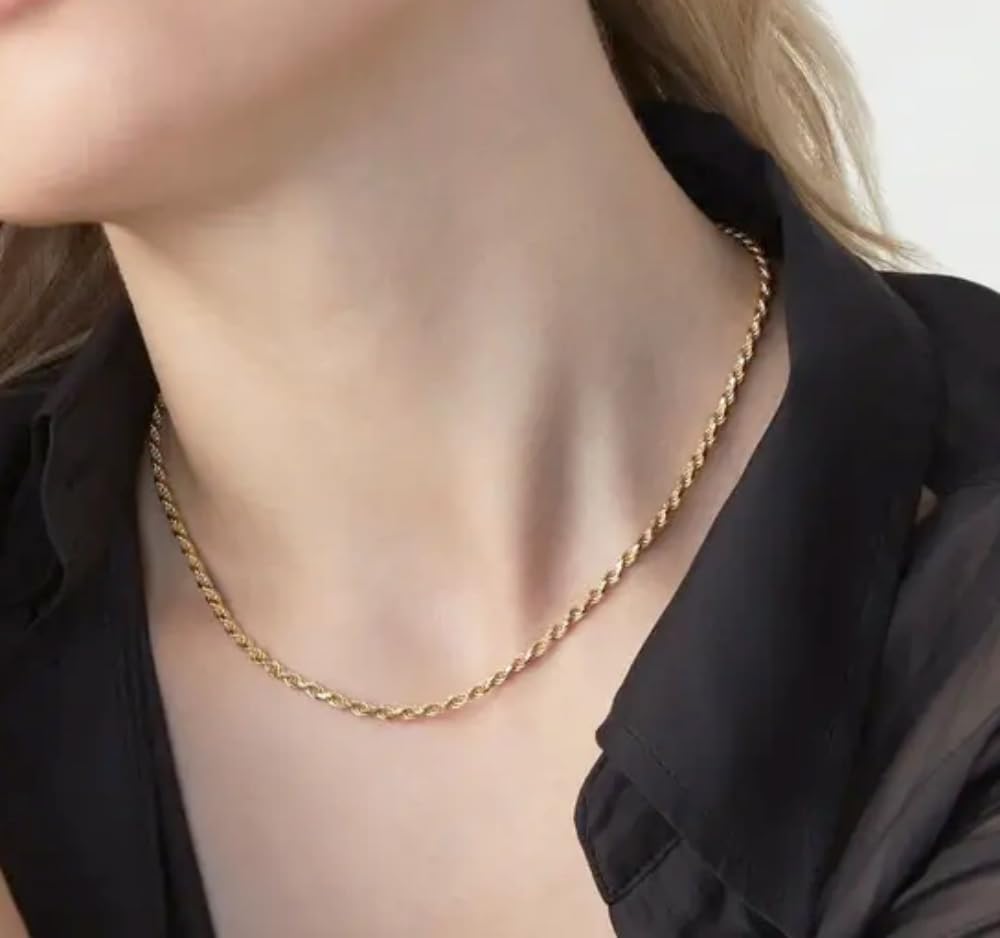 - Tidløs elegance: Denne 14k gule guldkæde med rebmønster har et klassisk, indviklet snoet design, der tilføjer et raffineret, sofistikeret præg til ethvert outfit.