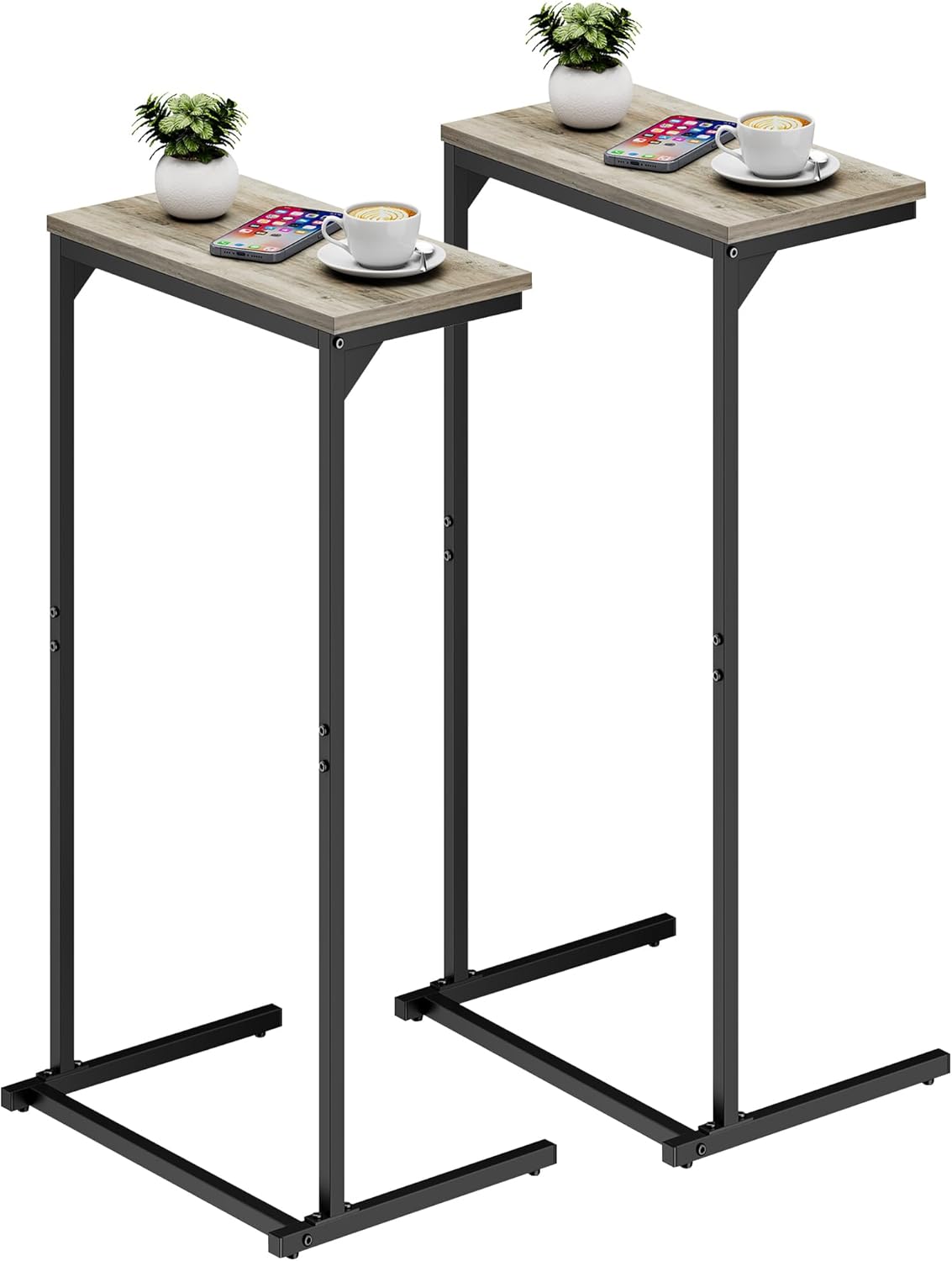 TUTOTAK C Shaped End Table, Small Side Table, Set of 2, 28.7 inch Tall Couch Table, Sofa Table, Living Room, Bed Room, Greige TB01BG0712