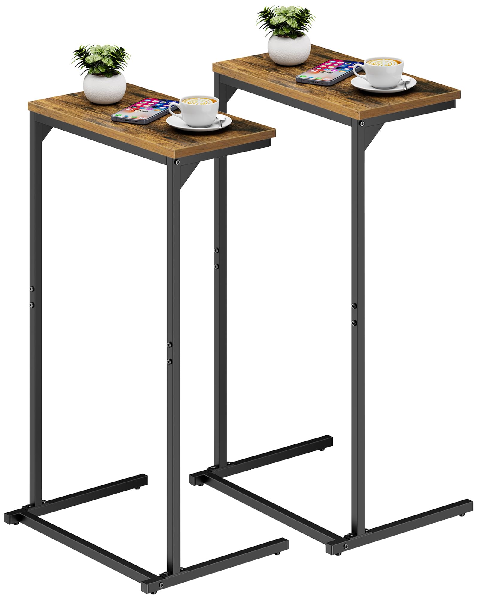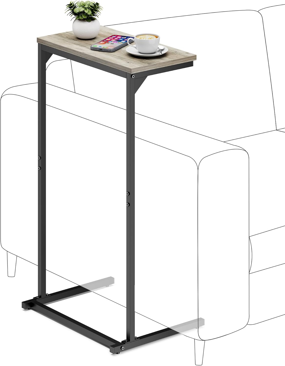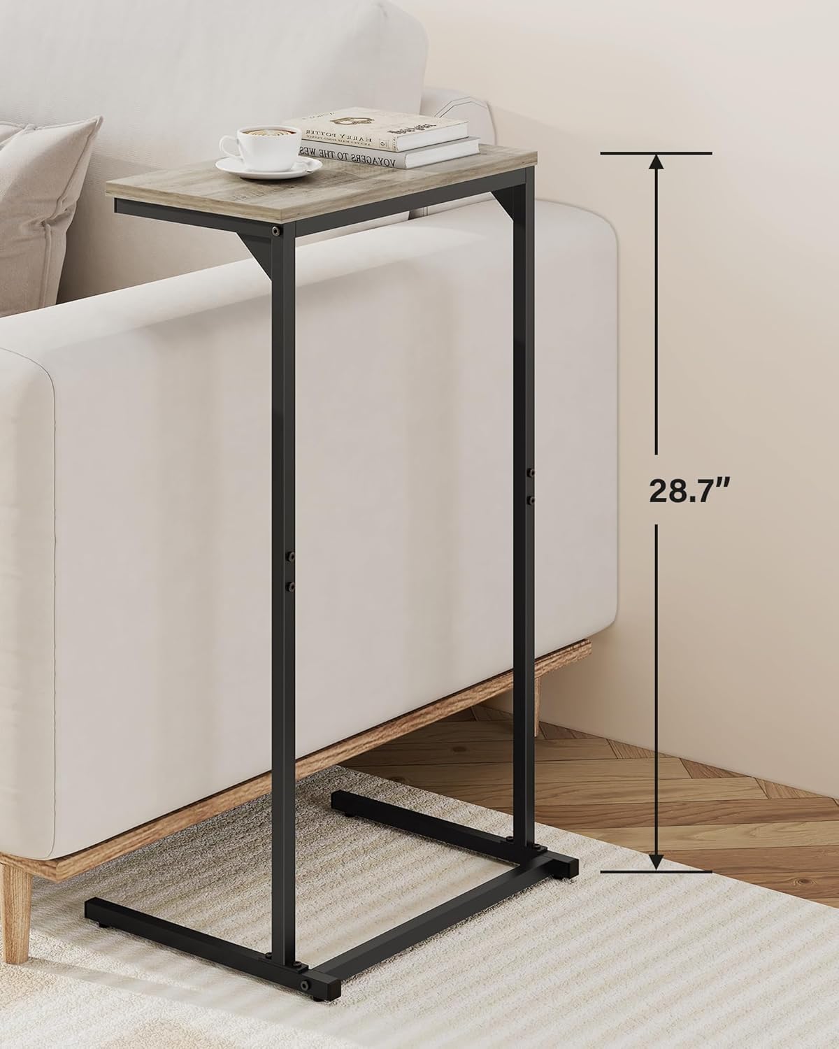 - [Tall Over Arm Couch Table] The 28.7-inch height couch arm table can be tucked under the sofa for books or phones and tablets. The tall C shaped sofa table can also be used next to the lounge chair, next to the bed.