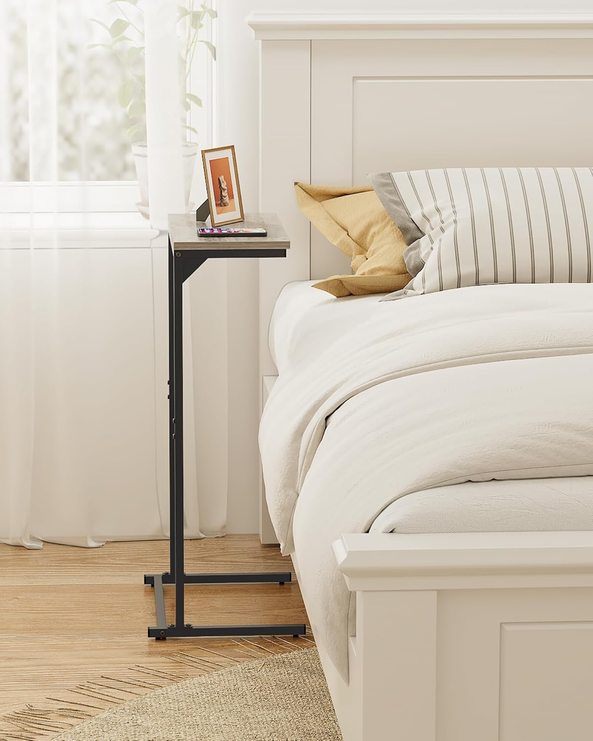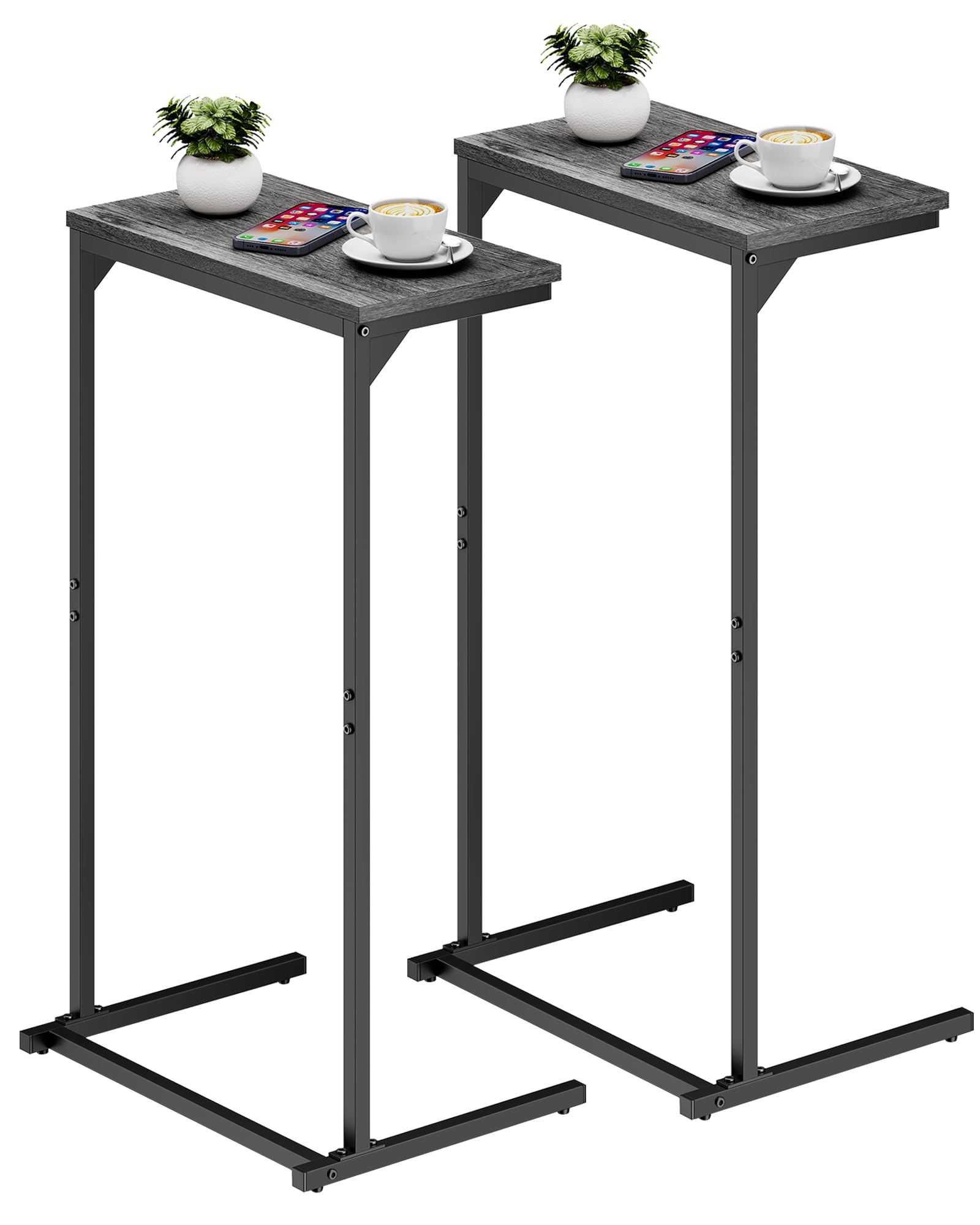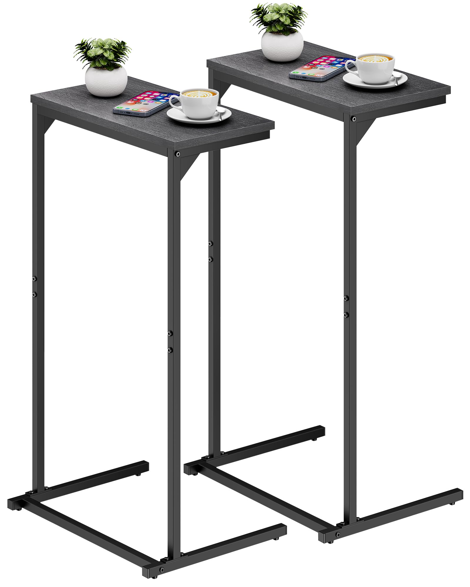 - [Tall Over Arm Couch Table] The 28.7-inch height couch arm table can be tucked under the sofa for books or phones and tablets. The tall C shaped sofa table can also be used next to the lounge chair, next to the bed.