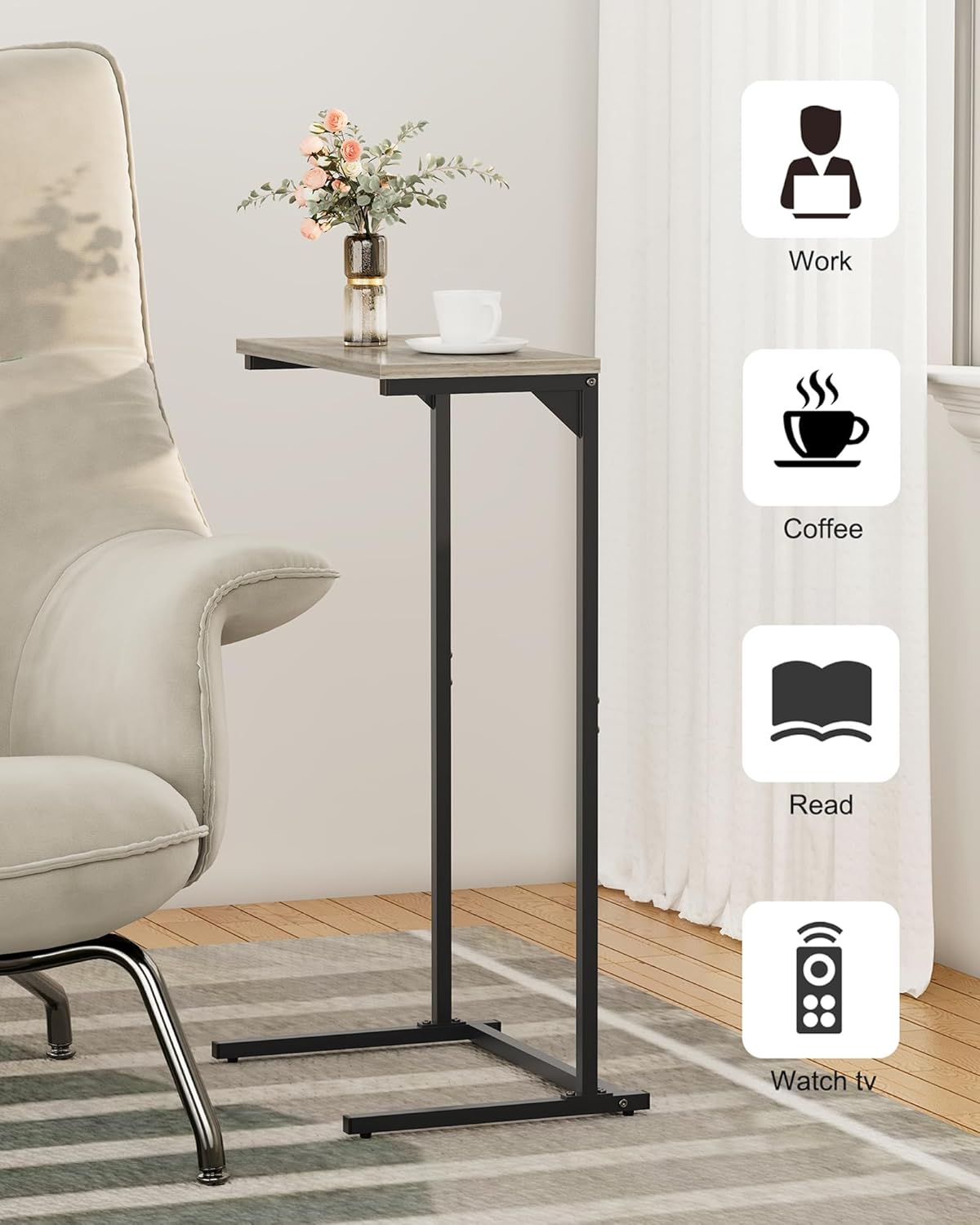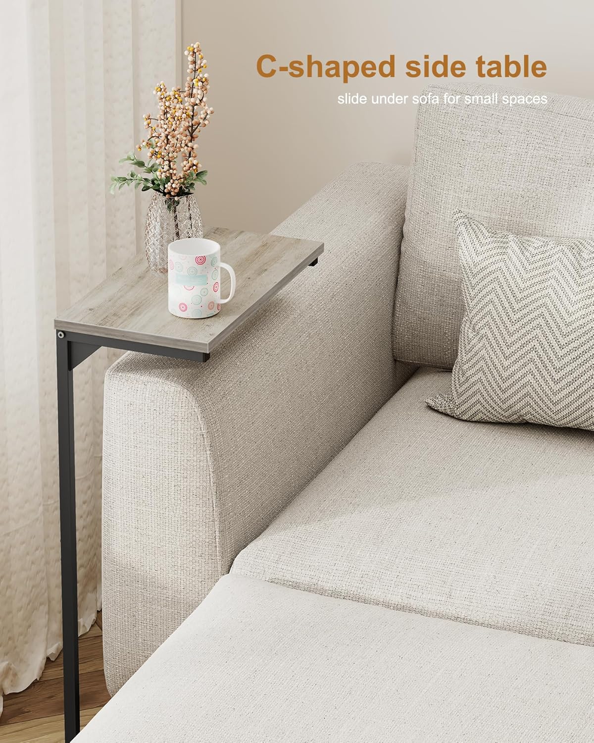 - [C-Shape Design] C structure allows you to slide this small sofa arm table under a chair, sofa or other furniture, offer you convenient access to your laptop for home office.