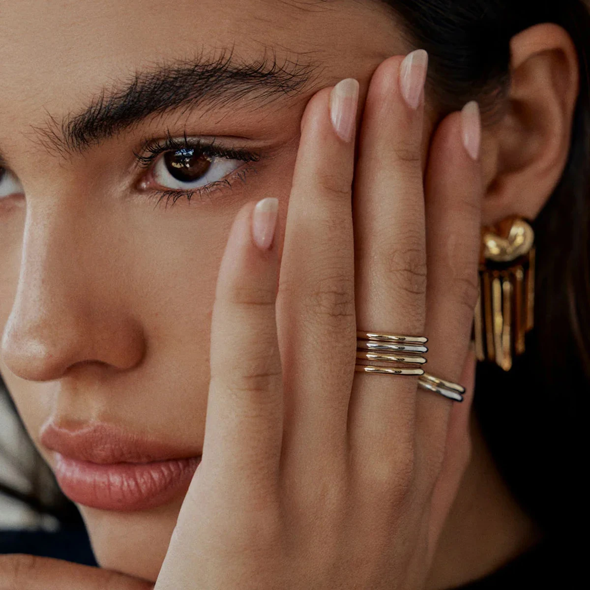 Vintage 18K forgyldt rustfrit stål Parallel dobbelt linje uregelmæssig åben ende ring kvinder anti allergisk charme daglige smykker