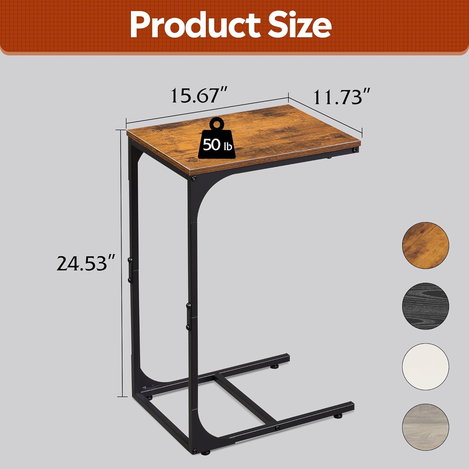 - 【Alsidig brug】Med en bordpladestørrelse på 11,73"B x 15,67"D er dette C-bord perfekt til at holde din bærbare computer, snacks, fjernbetjening eller endda en lille plante. Det er din pålidelige følgesvend i hverdagen!