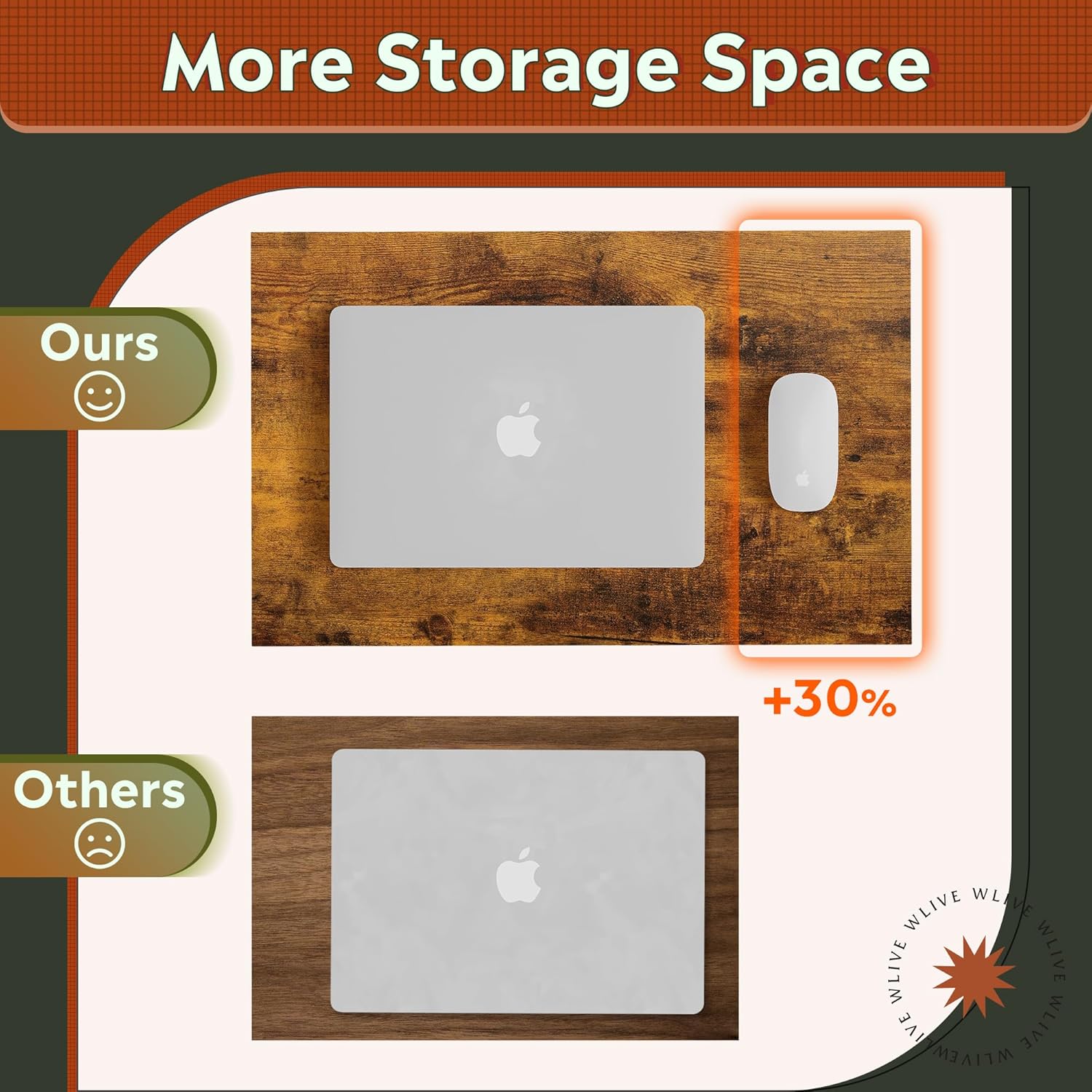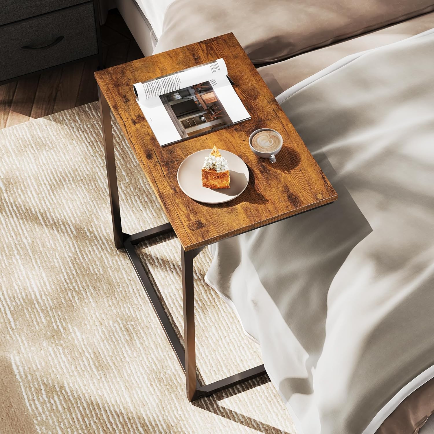 WLIVE C-formet endebord, små sideborde til sofa, bredt sofabord der kan skubbes ind under, laptop-snackbord til stue, soveværelse, hjemmekontor, rustik brun