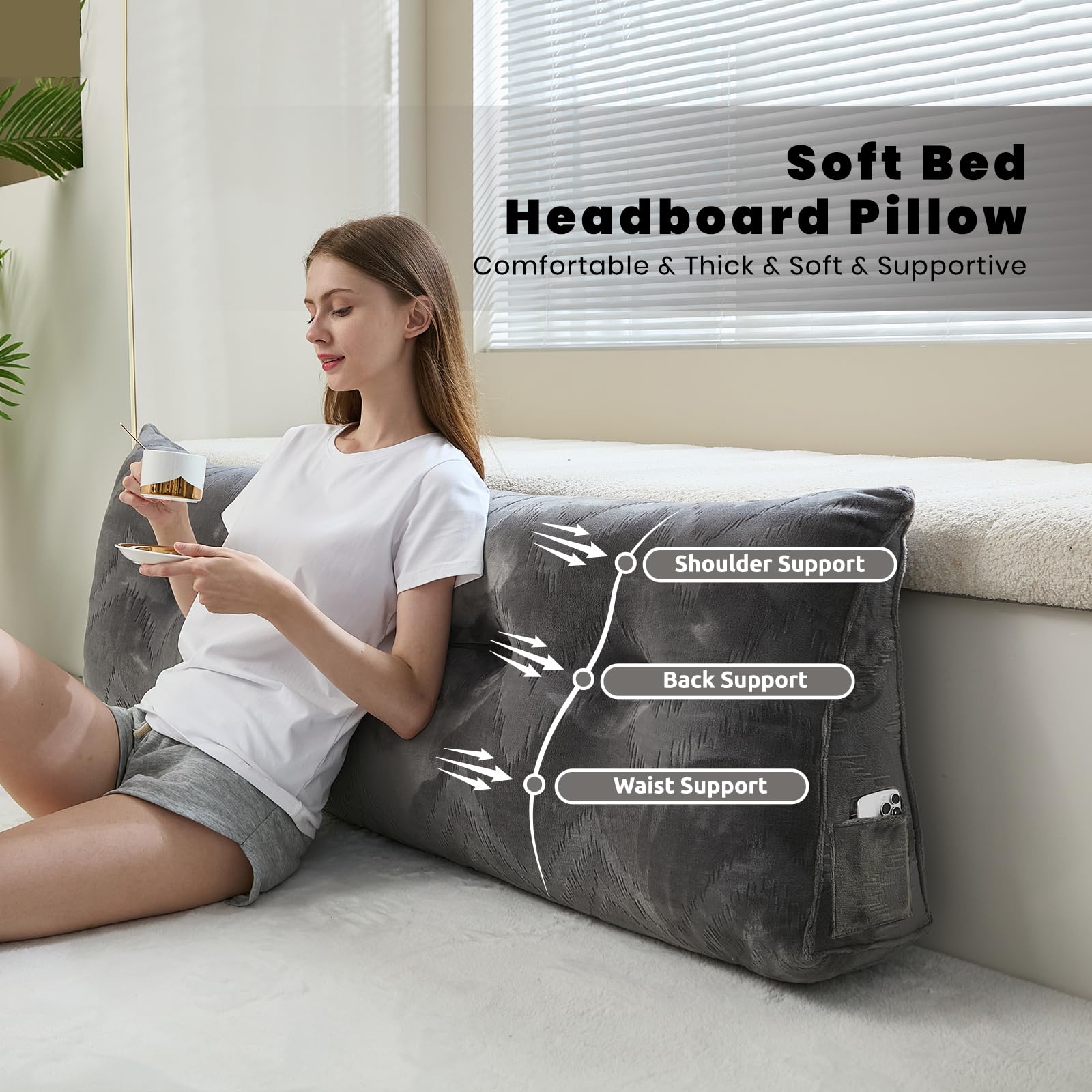 Zelladorra hovedgærde pude til seng, trekantet kilepude hovedgærde blød støtte under læsning og hvile, sengestøtte pude hovedgærde med aftageligt betræk, mørkegrå, queen (59"x8"x20")