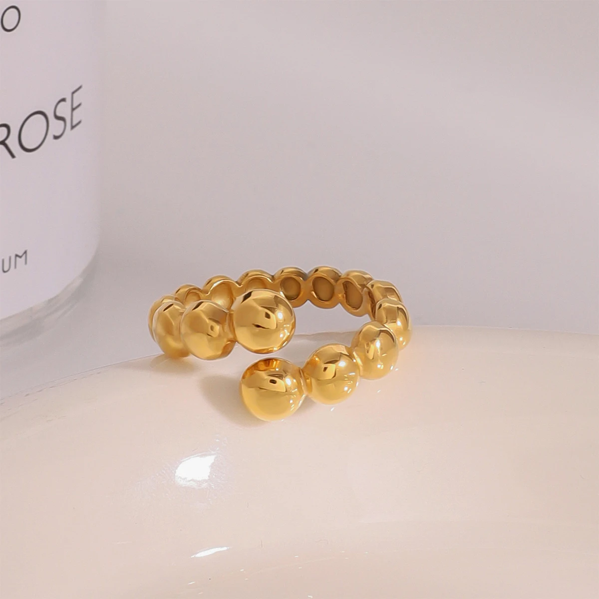 18k vergoldeter Edelstahl Hochwertiger Ins Persönlichkeit Nischenrundperlenring Damen Allergieprävention Charmschmuck Gala Geschenk