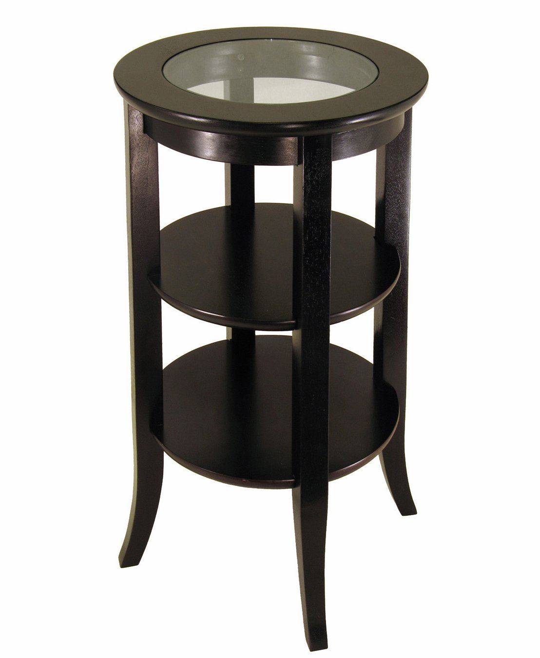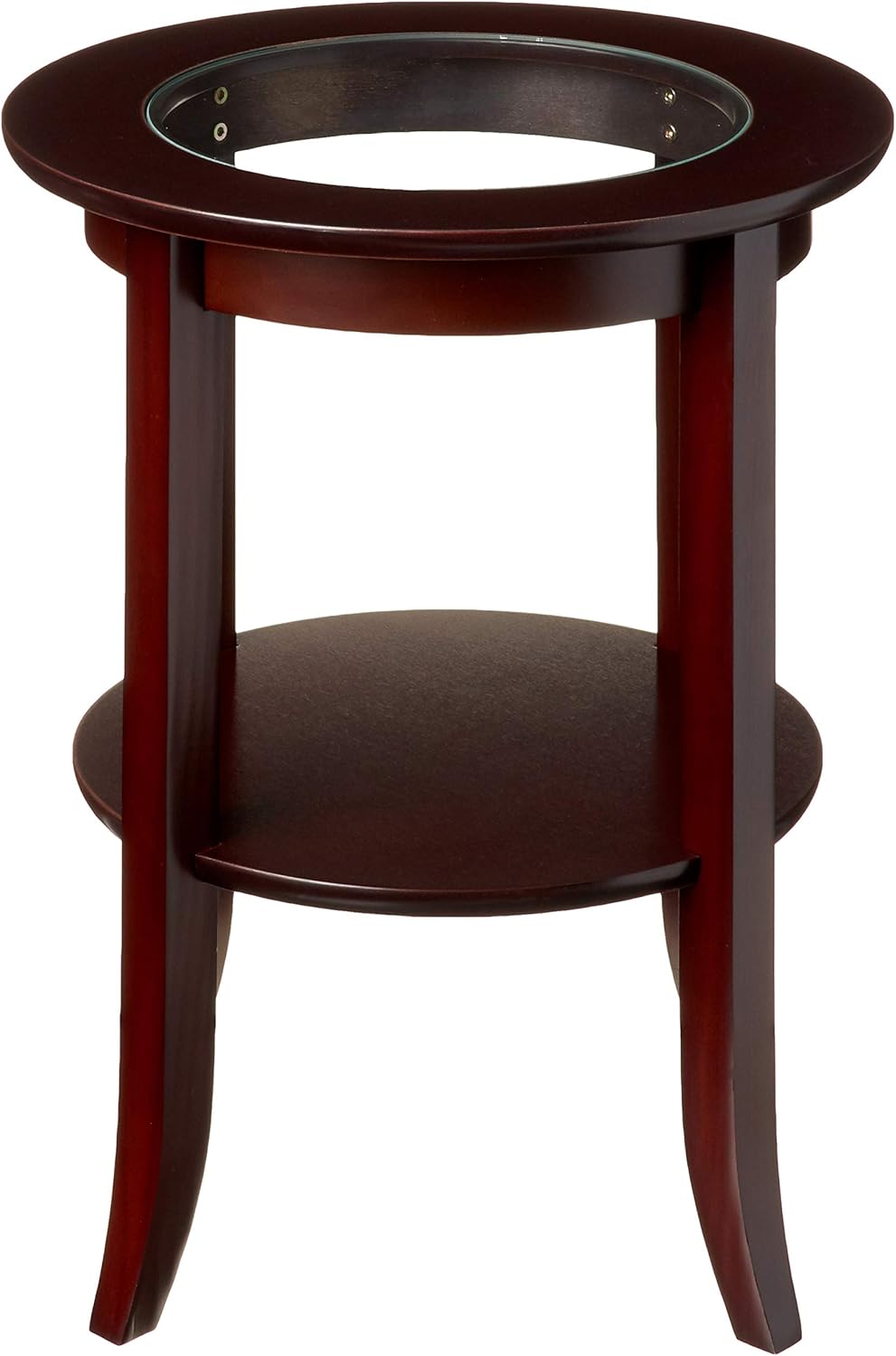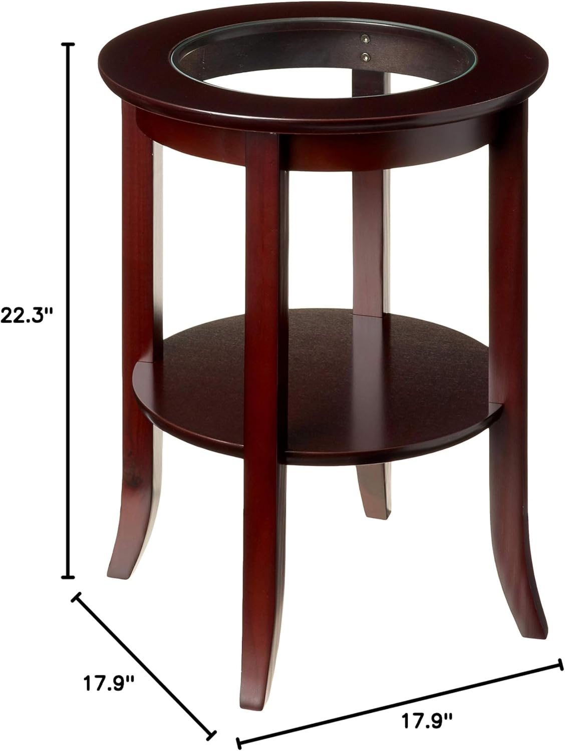 Frenchi Furniture-Wood Genoa End Table, Round Side /Accent Table , Inset Glass Espresso