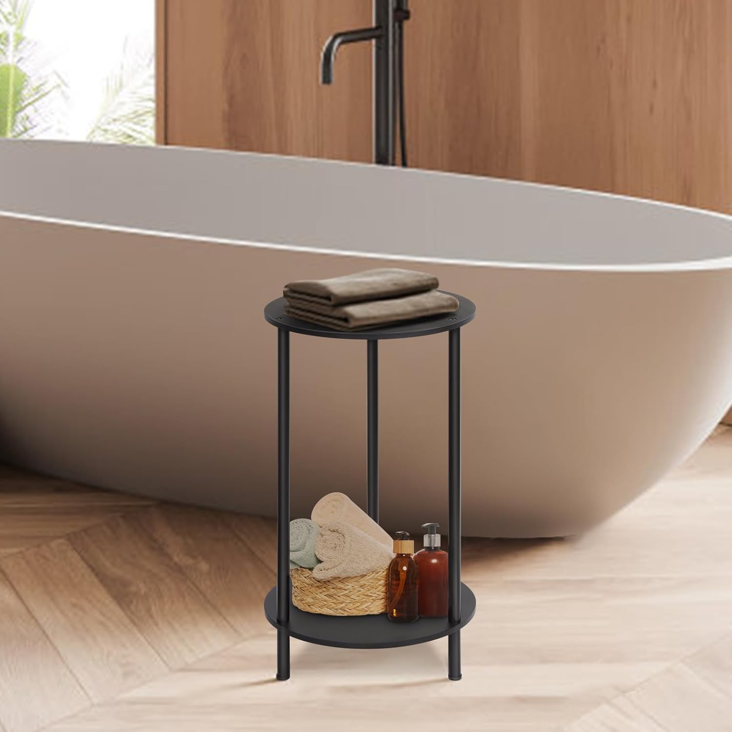 - Multi-Use: The small round table can be used as a sofa side table, bedside table, coffee table, accent table, nightstand, farmhouse end table, or plant stand. 2 tiers design can help store more essentials in your living room bedroom or office; Place coffee and vase on the tabletop and books on the shelf. Perfect for small spaces and small apartments.