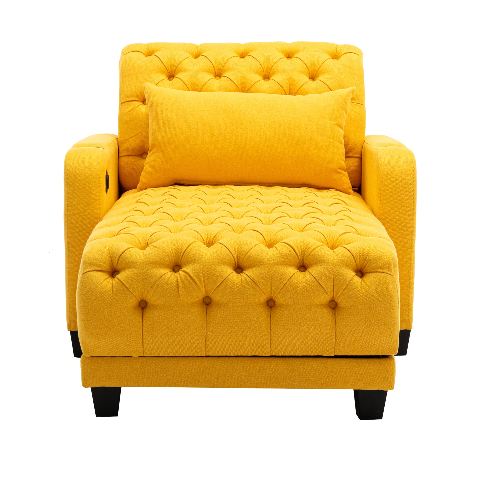 COOLMORE Multifunktionaler Wohnzimmer Freizeit Liegesessel Barry Gepolsterter Bequemer Sessel Kabelloses Laden, Sanft verstellbare Rückenlehne & Lendenkissen für Zuhause Wohnung (Gelber Leinen)