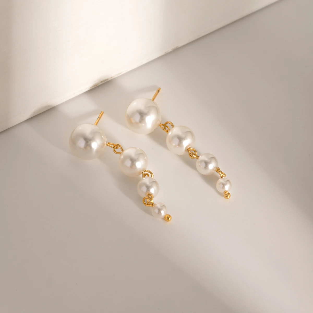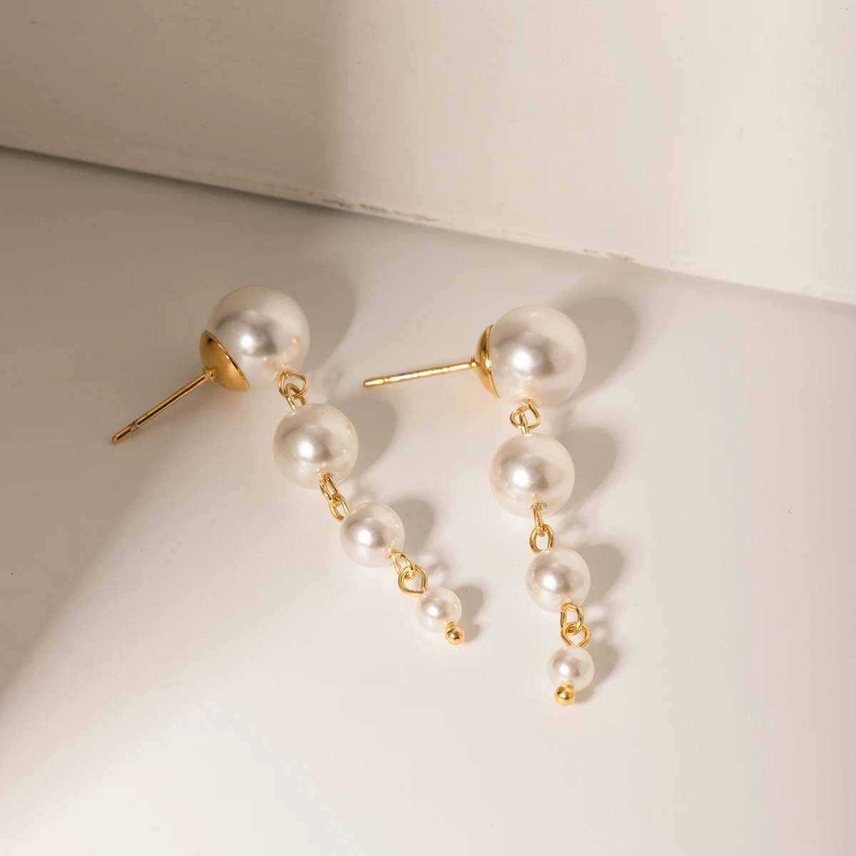 18k vergoldeter, rostfreier Edelstahl, stilvoller Imitationsperlen-Anhänger-Ohrring, exquisite Sommer-Anti-Allergie-Schmuck