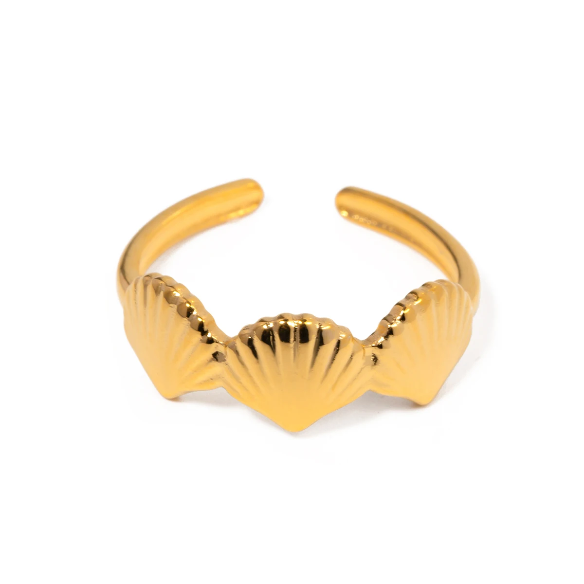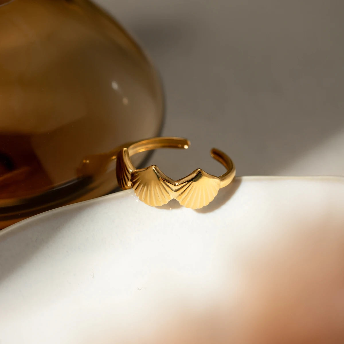 2024 Zarter Edelstahl 18k Gold Edelstahl Muschelförmiger Öffnungsring Goldfarbene Textur Trend Schmuck für Frauen