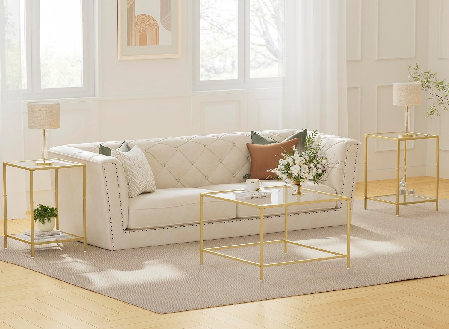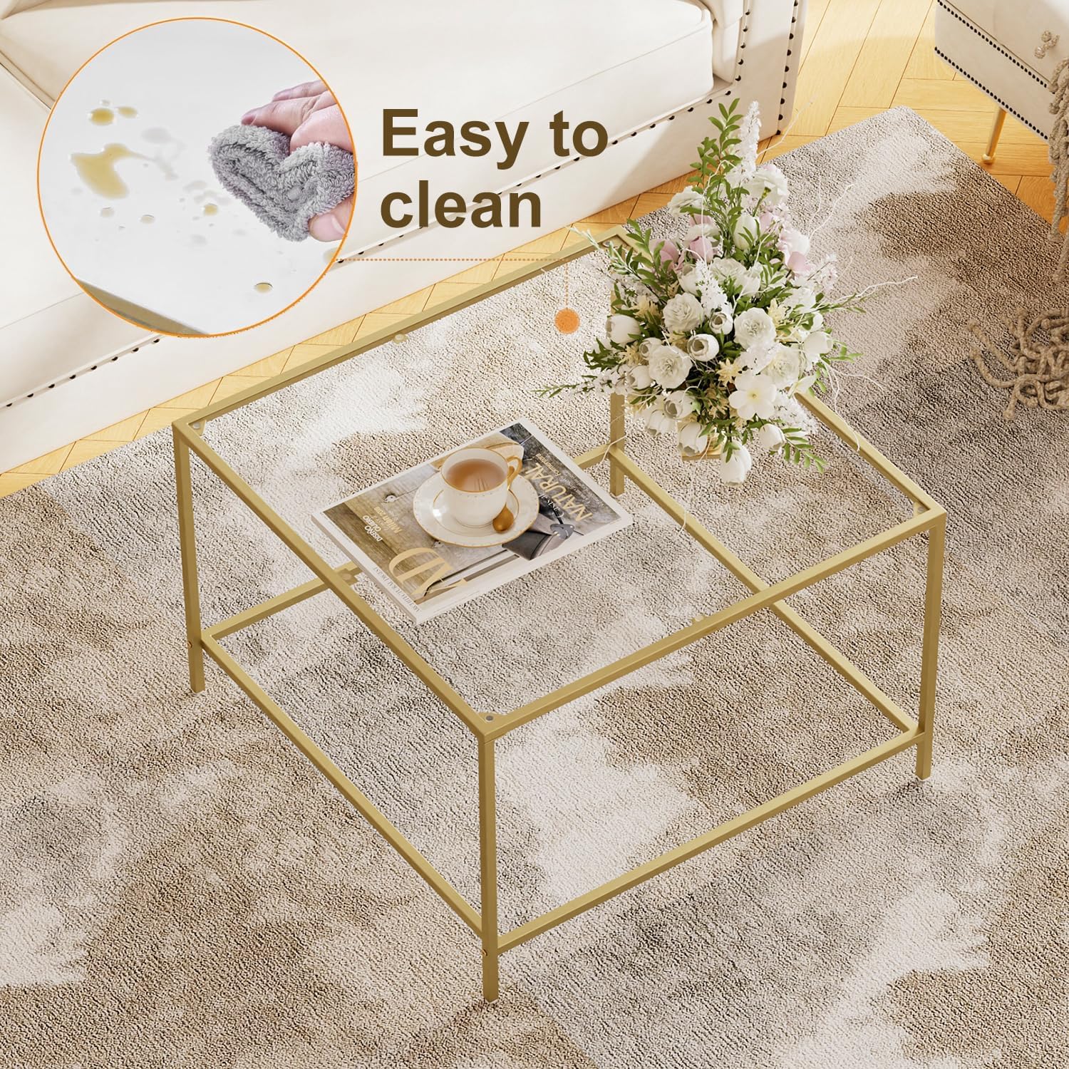 - Elegant Modern Design: Our Square Gold Glass Coffee Table features a sleek, minimalist design that adds sophistication to any living room.