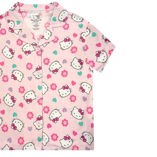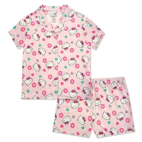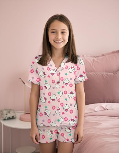 Hello Kitty Mädchen Schlafanzug-Set - 2-teiliges gemütliches Mädchen-Pyjama mit Knopfleiste, kurzärmeligem Oberteil & Shorts für Kinder - Offizielles Produkt Hellrosa