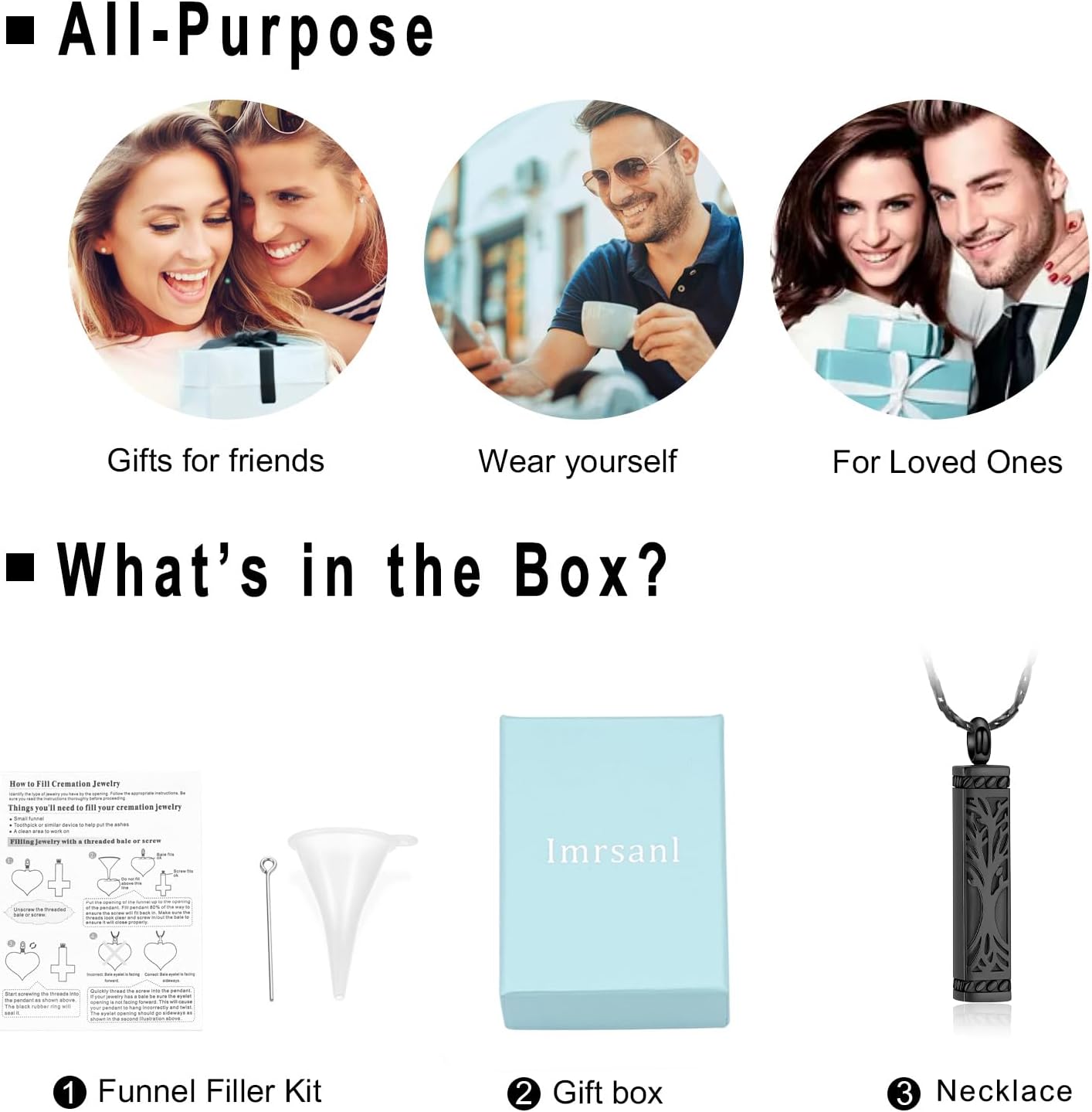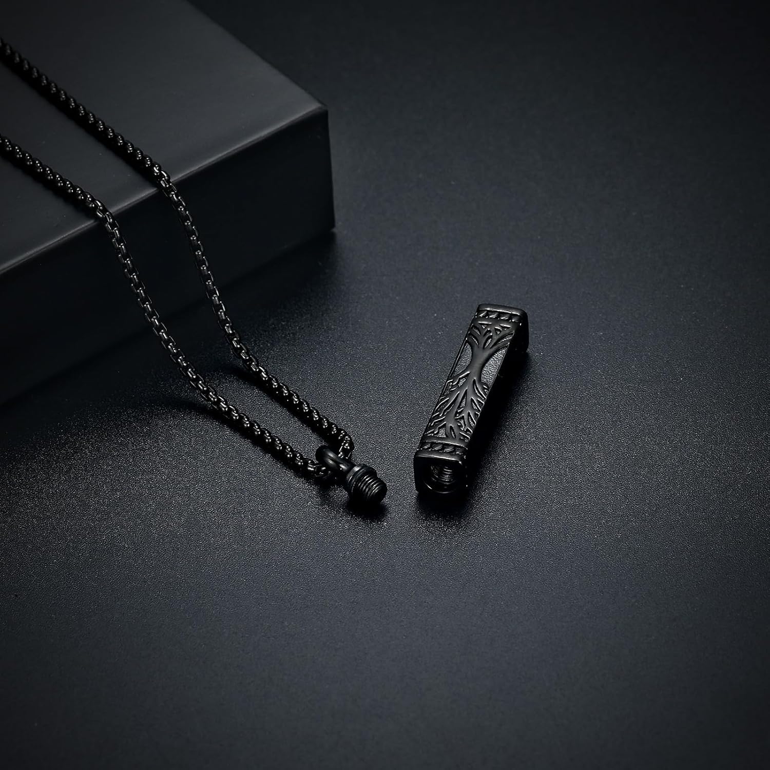 Imrsanl Tree of Life Urn Necklace for Men Women Bar Cremation Jewelry for Ashes Keepsake Ashes Necklace Pendent