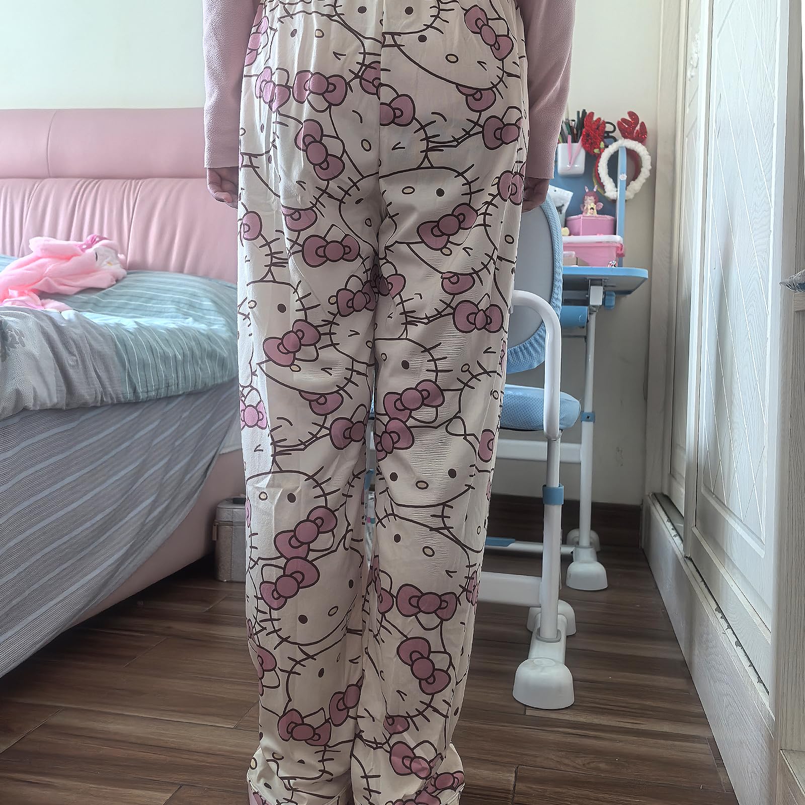 Kawaii Pyjamahosen für Frauen Mädchen Niedlicher Katzen Anime Cartoon Druck Modische Schlafanzughose Bequeme Freizeitkleidung (L)