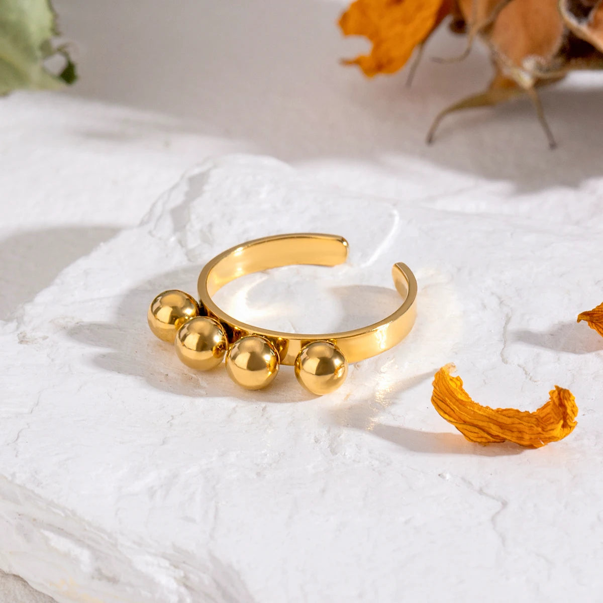 Personalisierter Ball mit glatter Oberfläche, Öffnungsring aus Edelstahl, 18K PVD goldbeschichtet, allergiepräventiver Schmuck