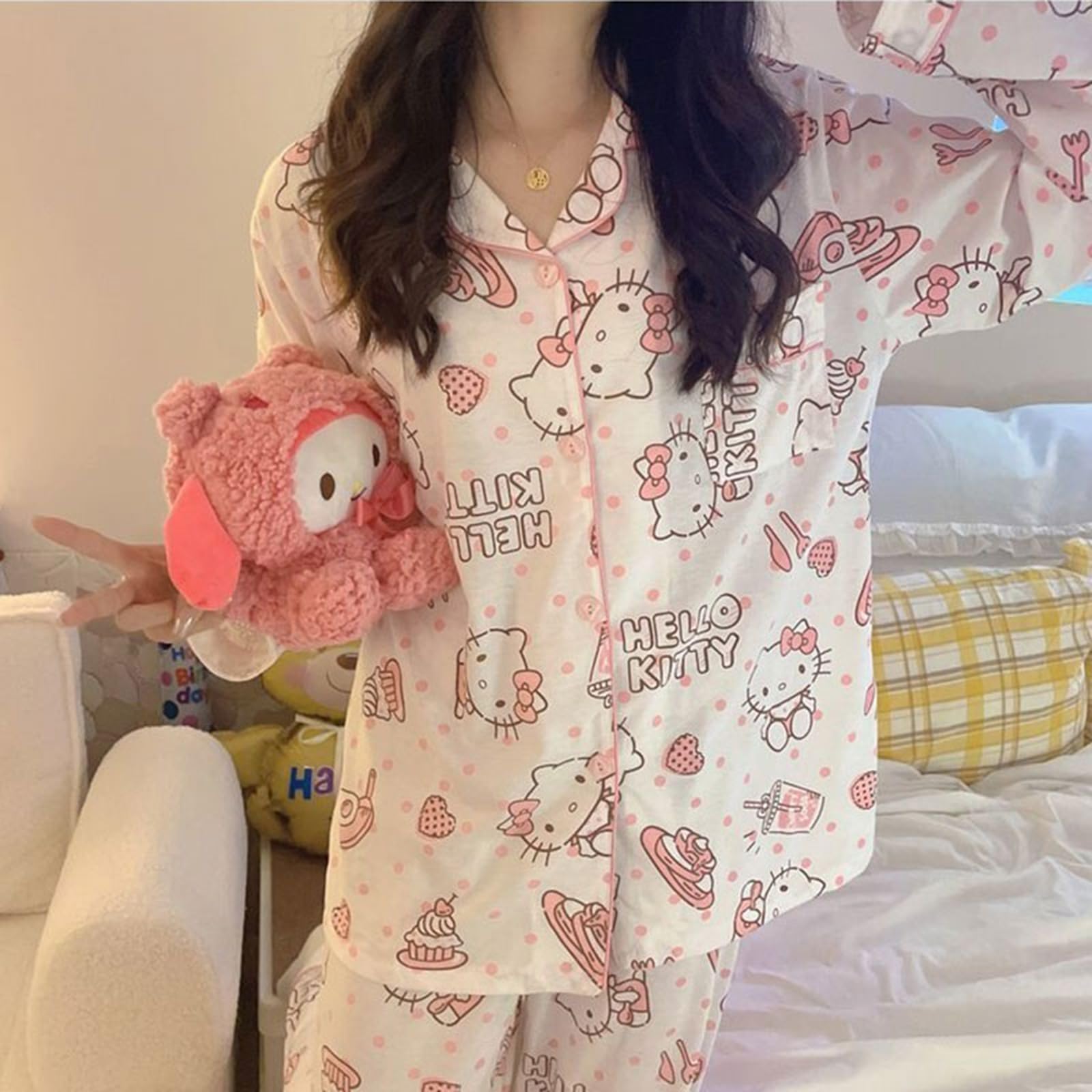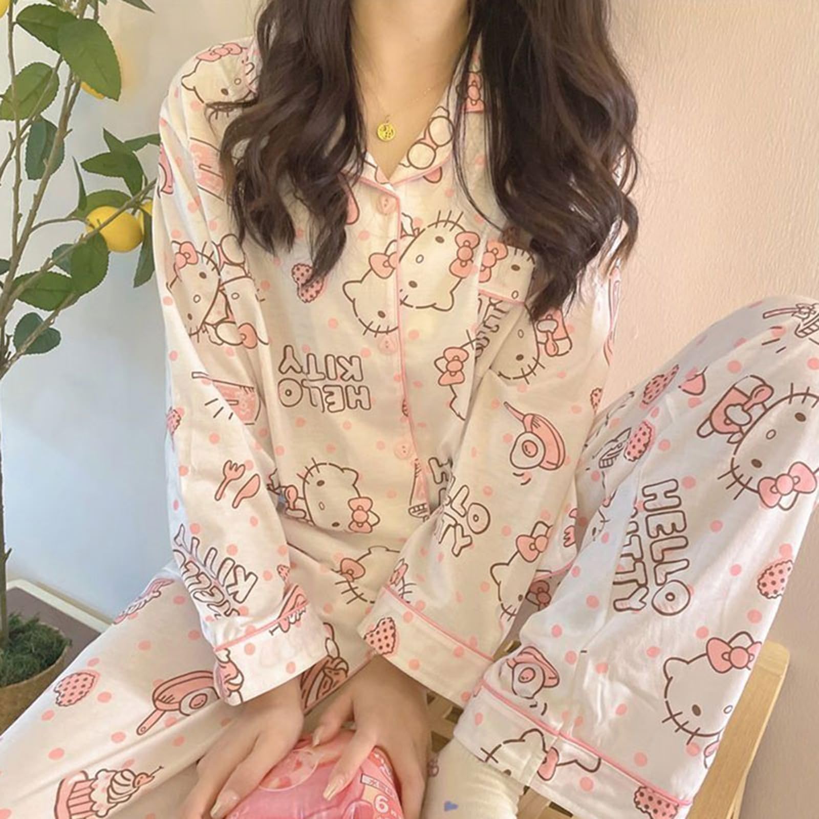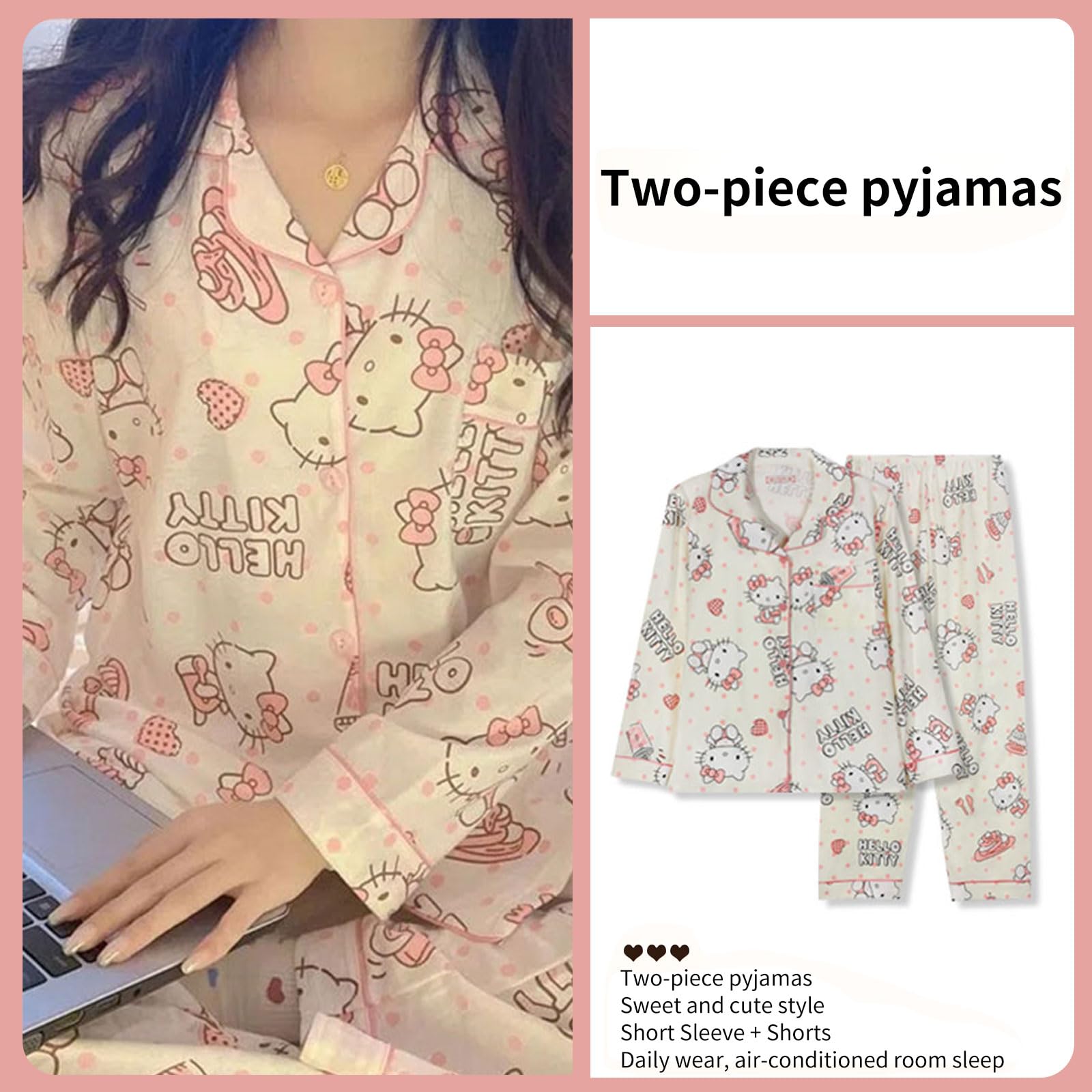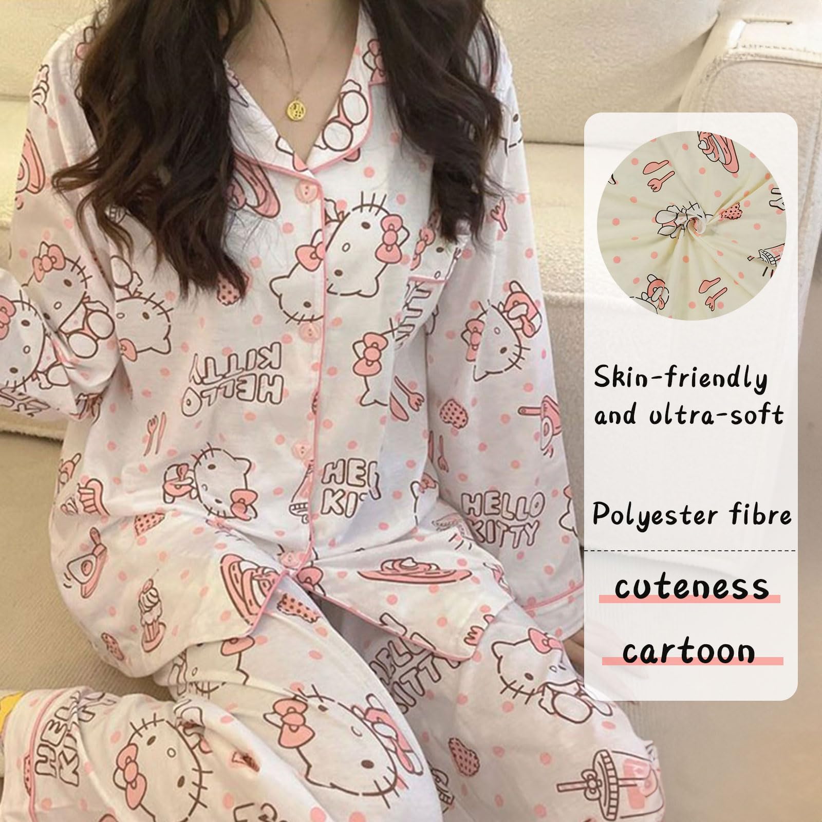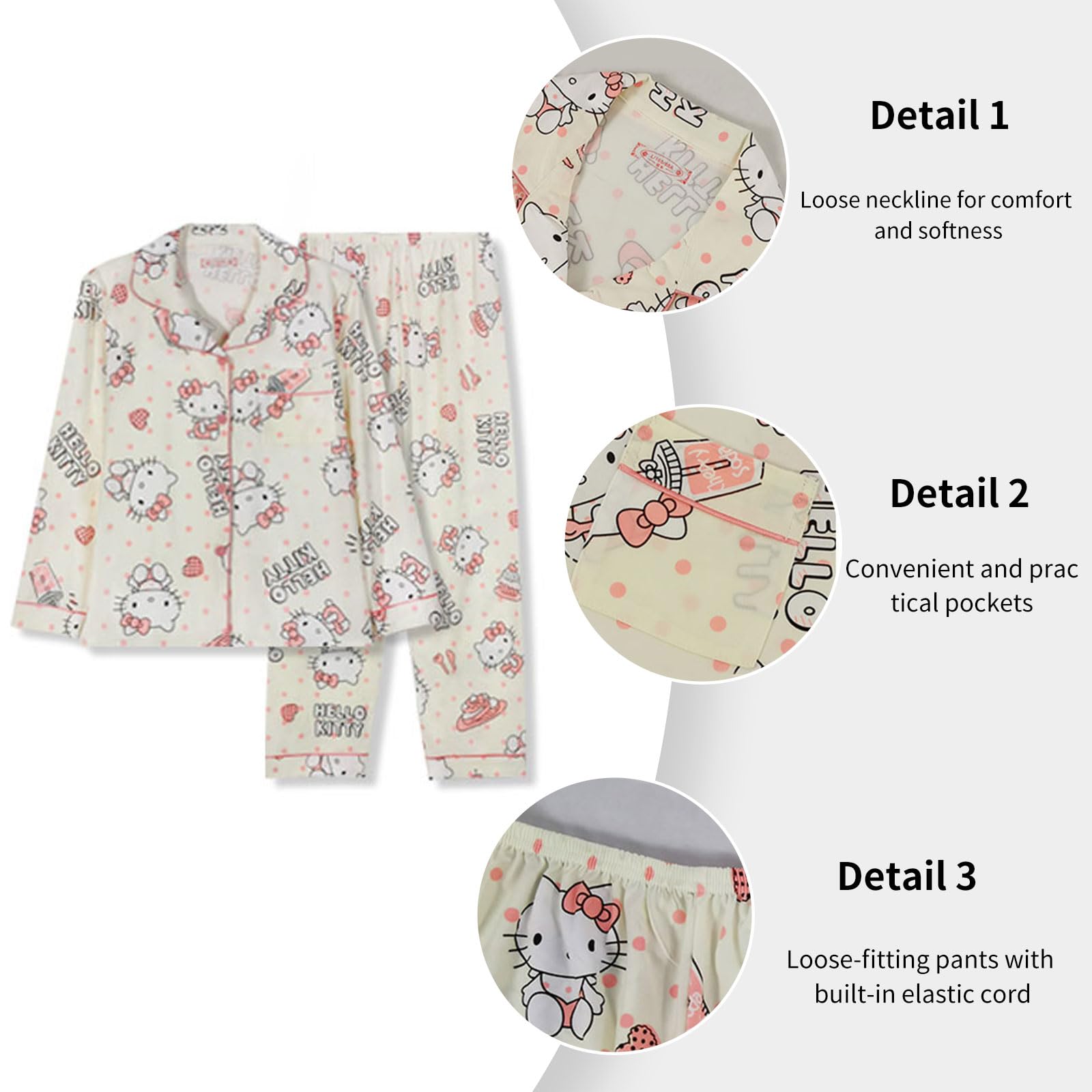 - PAJAMA DESIGN - Button down long sleeve shirt with elastic waistband pants, cute anime print, I believe no woman or girl can resist this cartoon pajamas.