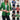 Color: green, white, black, red, dark blue, blue