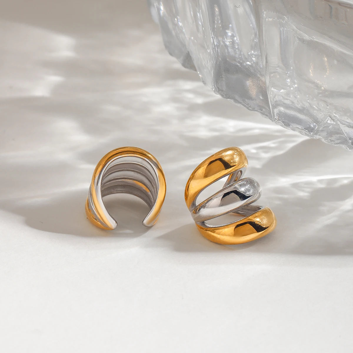 Zora Three Layer Ear Cuff Stainless Steel Matching Color Non Pierced Clip on Earrings for Women Cartilage Metal Fashion Jewelry
