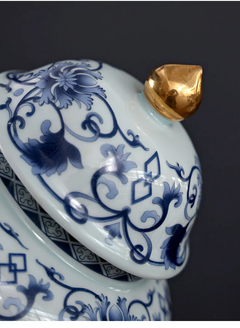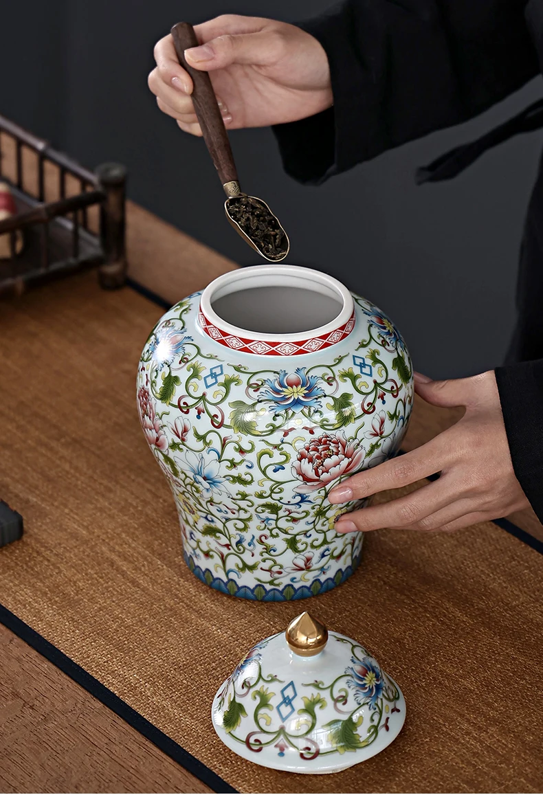 Tarro General de flores pintado con esmalte moderno, tarro de té sellado de cerámica, tarro decorativo de arte dorado, botella de almacenamiento artesanal, decoración del hogar