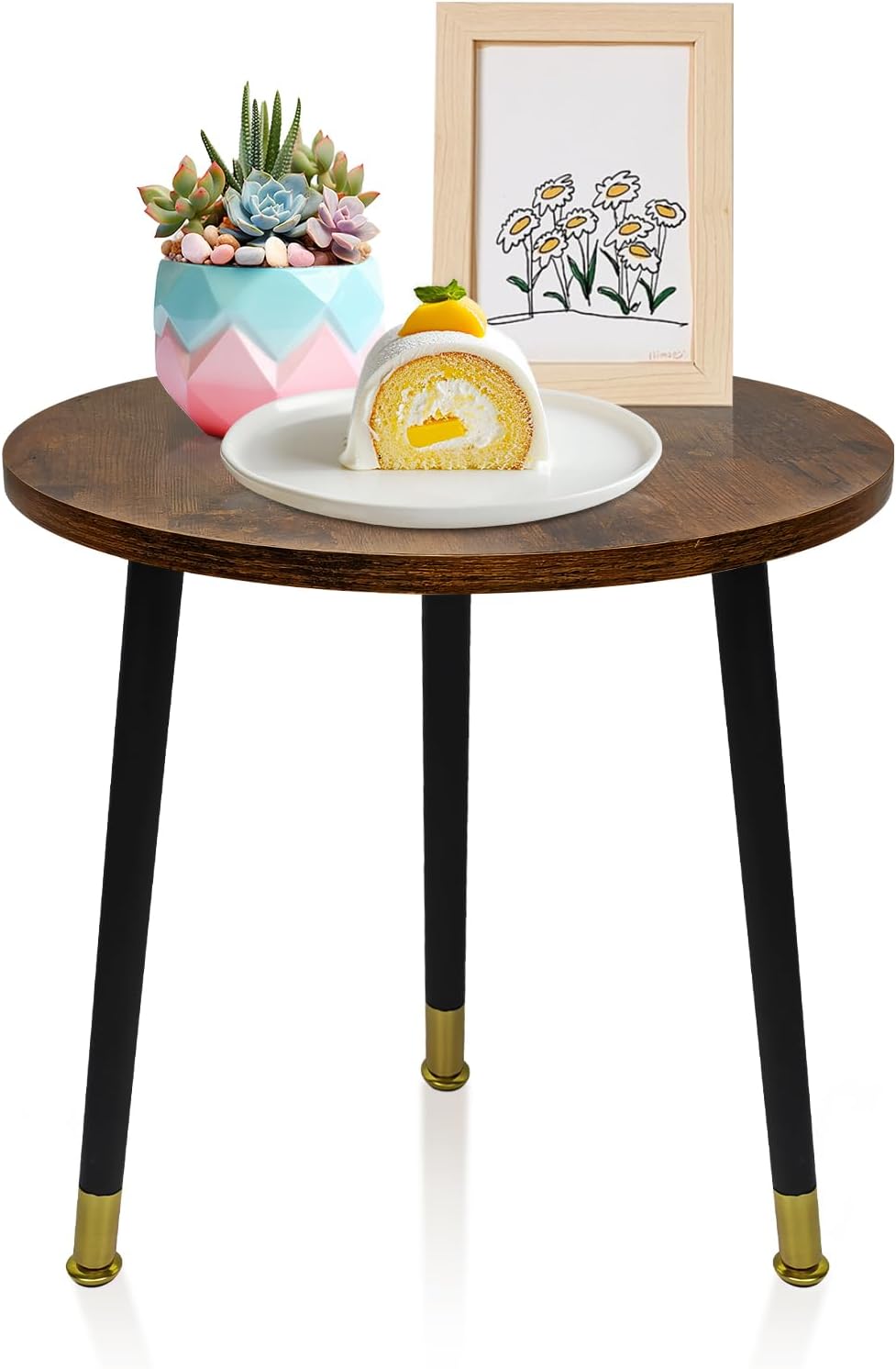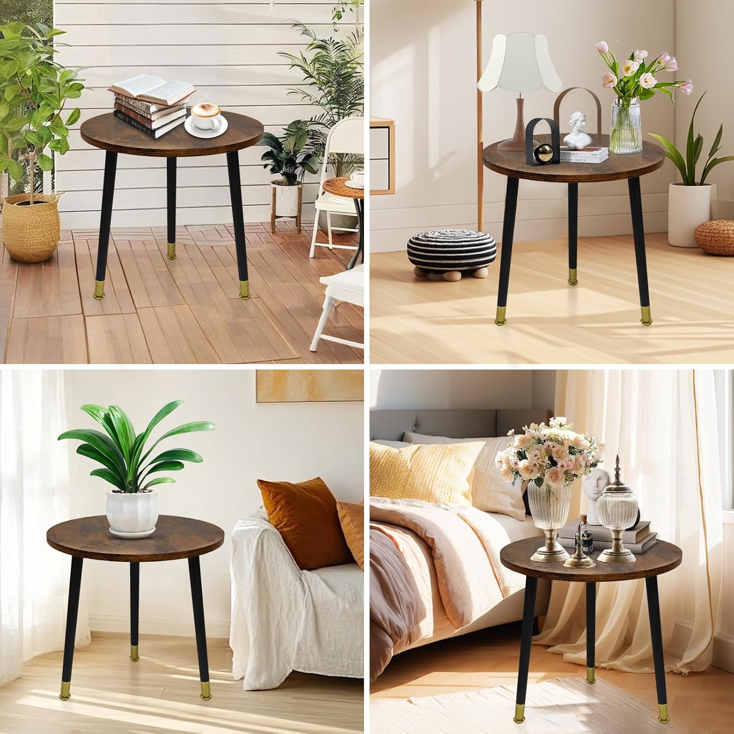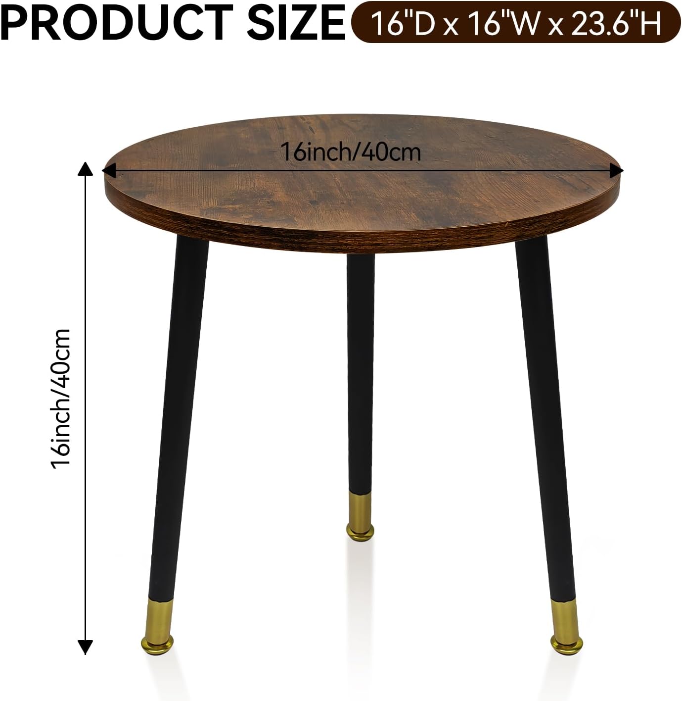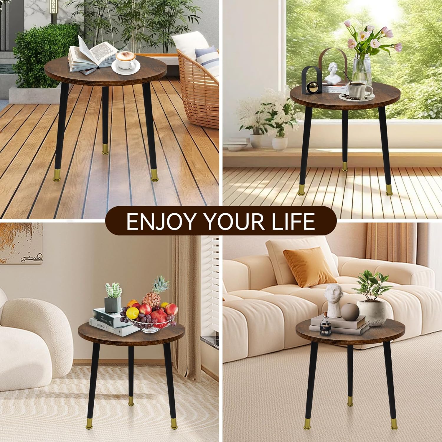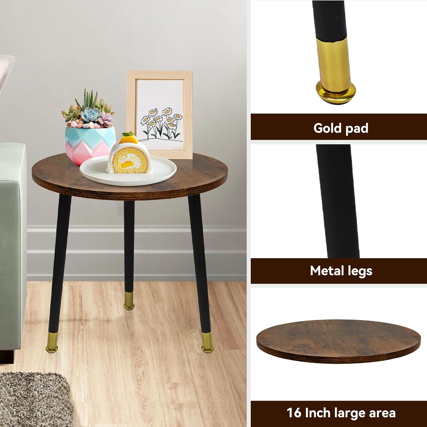Round Side Table for Small Spaces-16inch Brown Wood Top & Black Metal Tri-Leg Accent Table, Rustic Modern Nightstand End Table for Bedroom, Living Room, Balcony - Easy Assembly Farmhouse Decor