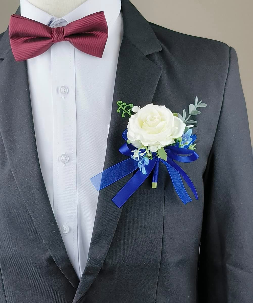 - 【Package includes】1 pc boutonniere and 1 pc wrist corsage. Friendly note: The artificial flowers may be squeezed due to transportation, you can adjust them to the most natural state when receiving the items.