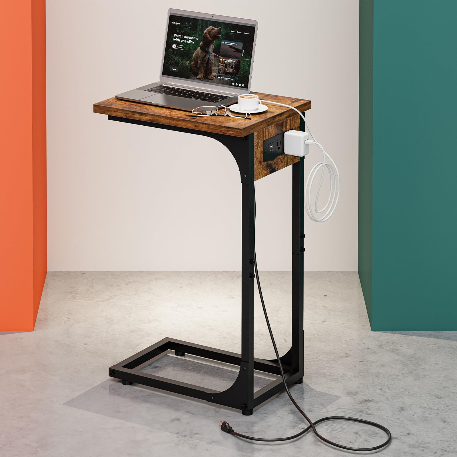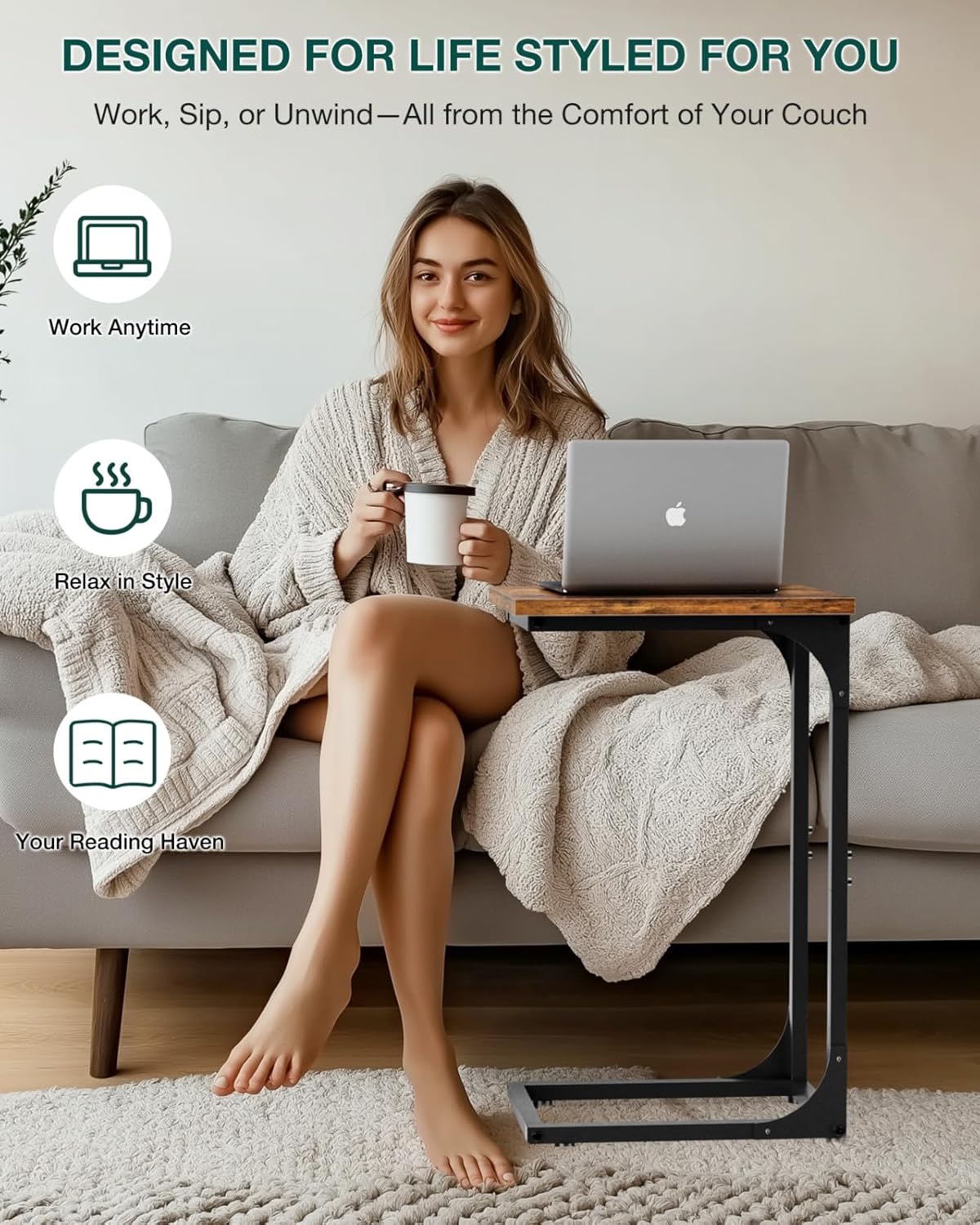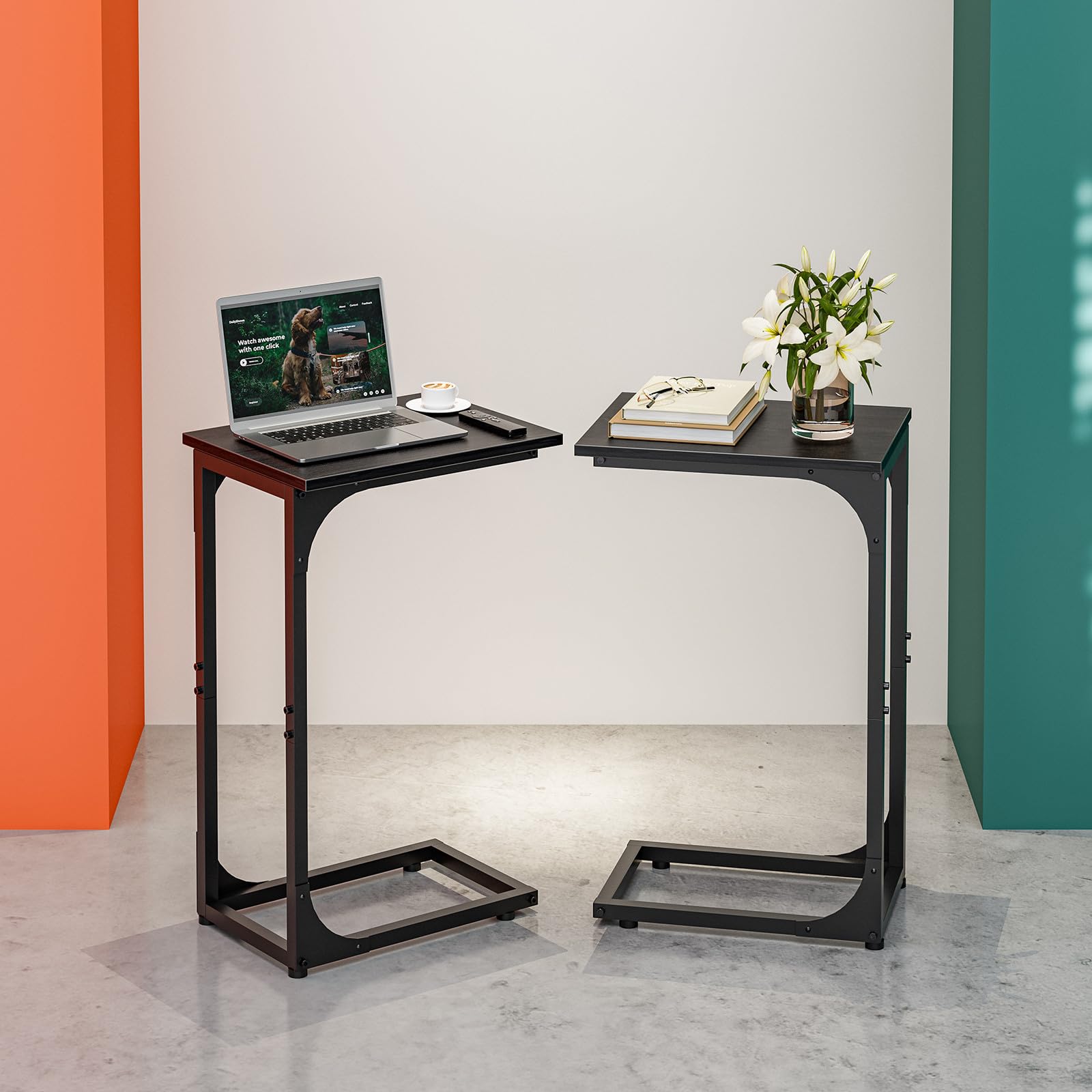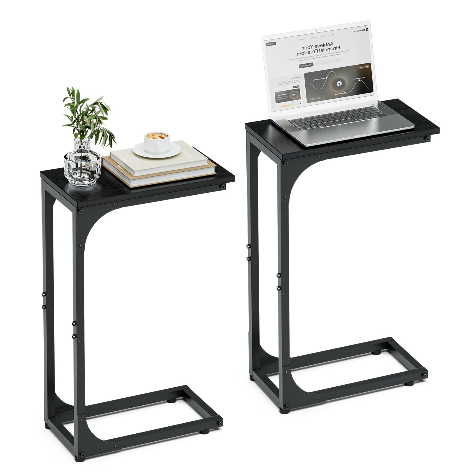 - 👍𝗠𝗨𝗟𝗧𝗜-𝗙𝗨𝗡𝗖𝗧𝗜𝗢𝗡𝗔𝗟 𝗠𝗢𝗗𝗘𝗥𝗡 𝗦𝗧𝗬𝗟𝗘 — With a minimalist yet modern look, this c shaped end table doubles as a sofa table, small coffee table, or laptop desk, while also serving as a tv tray for eating on couch. Blending into any living room, bedroom, or office décor, it offers versatility as a couch desk, bedside table, or under couch table