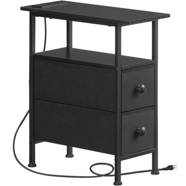 HOOBRO End Table with Charging Station, Narrow Side Table, Nightstand with 2 Non-Woven Drawers, Slim Sofa Side Table, for Small Spaces, Living Room, Bedroom, Rustic Brown and Black BF486UBZ01