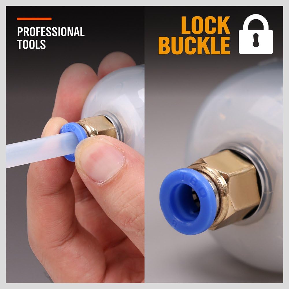 - The pump includes two a 7-Inch by 1/4-Inch (outer diameter) hose extension for deep reach and small diameter applications, locking cap on end of hose and a 7.5-Inch/19-Centimeter clear hose.