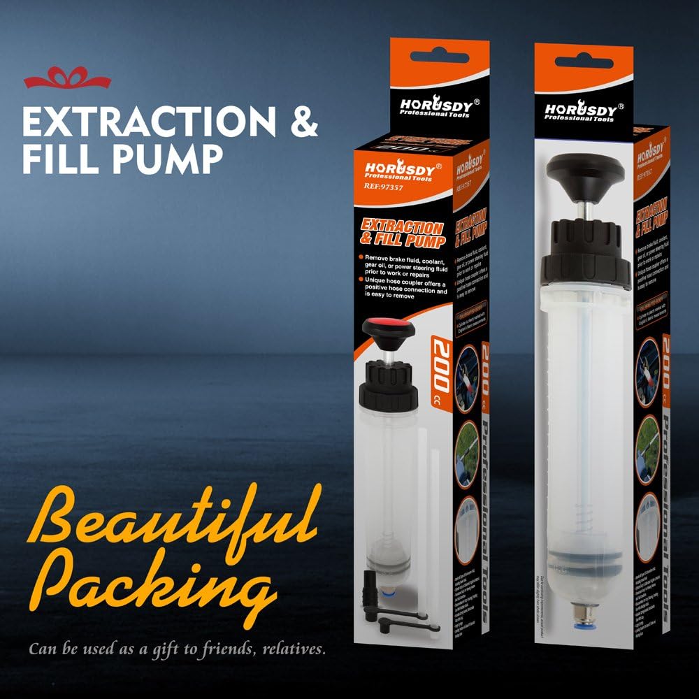 - Filling/Extracting Pump is designed to remove and fill brake fluid, anti-freeze, gear oil, power steering fluid and more.