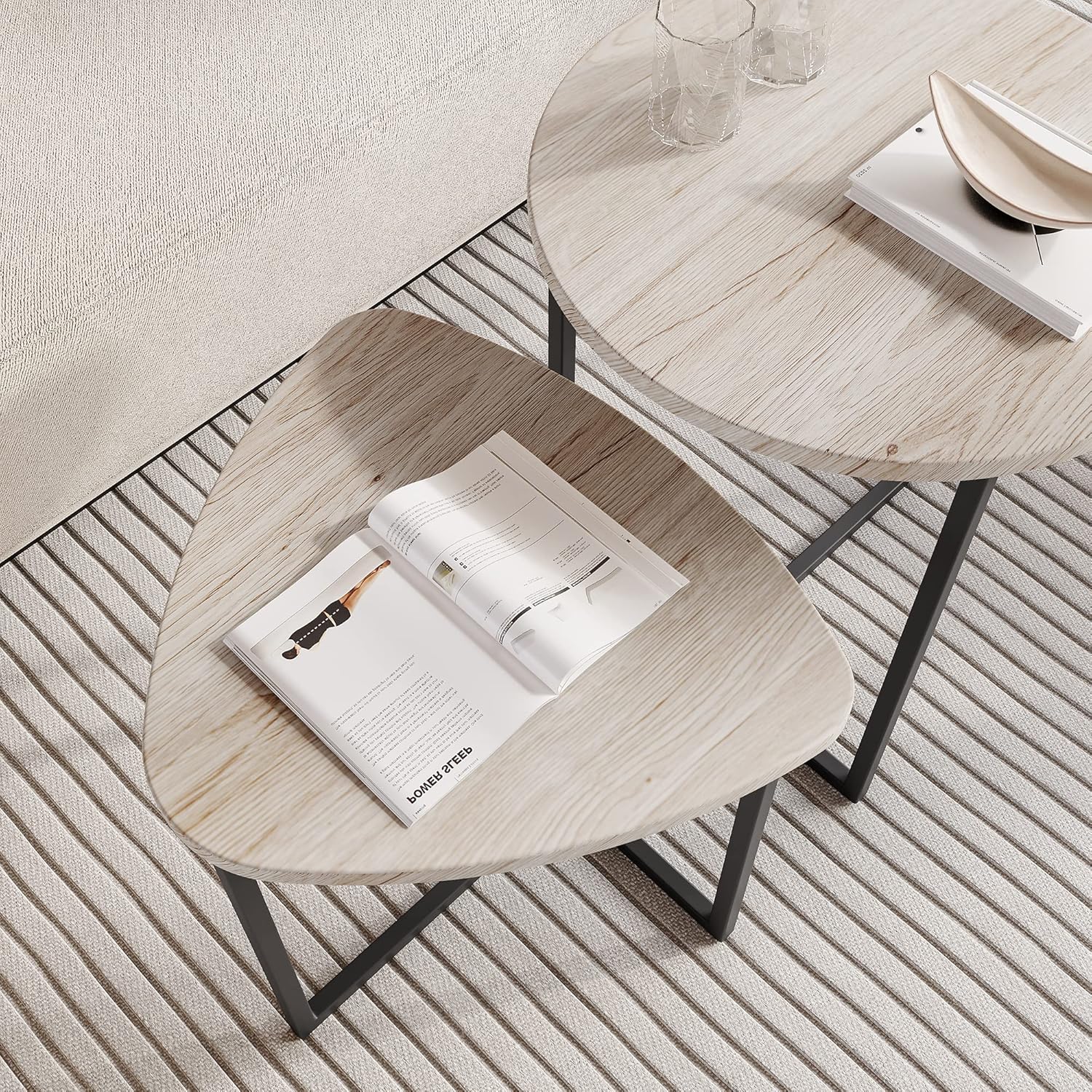 Round Coffee Table Set of 2 End Tables for Living Room,Black Small Coffee Table Living Room Table,Metal Frame & Wood Look,Sturdy and Easy Assembly,Stacking Side Tables Bedroom,White