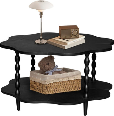 31.5" Coffee Table, 2-Tier Center Table with Storage Shelf for Living Room, Small Space Home Office, Flower Shape, Easy to Assemble
