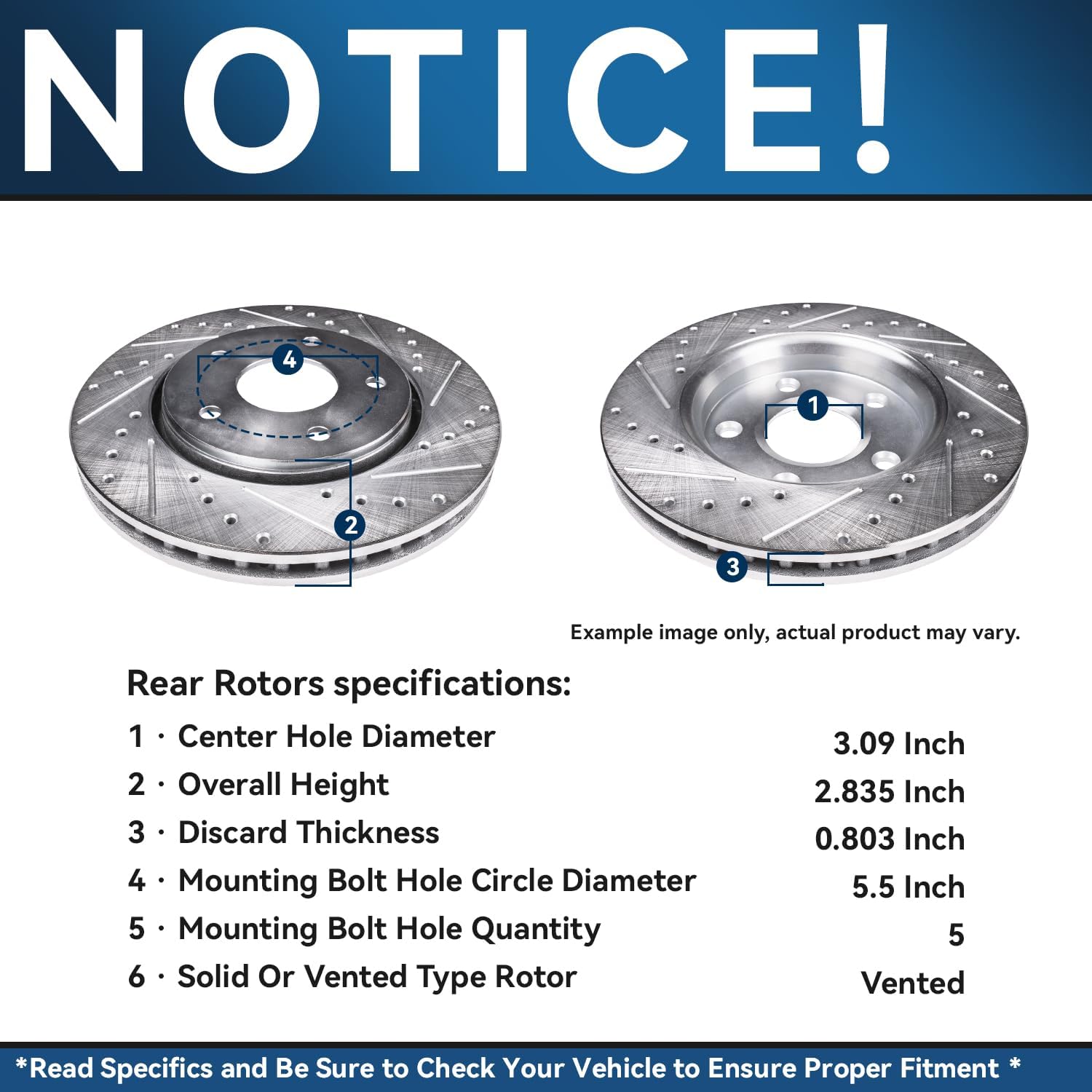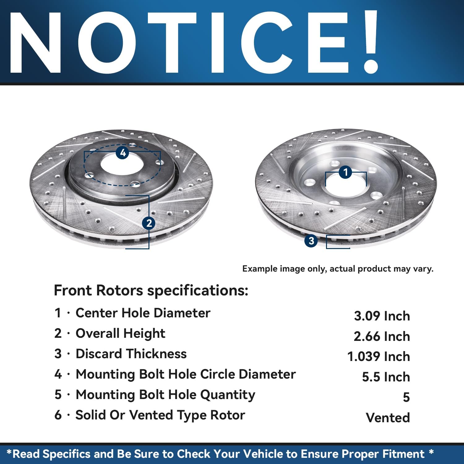 - Brake Pads and Rotors Kit Includes: 2x Front Drilled & Slotted Disc Brake Rotors + 2x Rear Drilled & Slotted Disc Brake Rotors + 2x Front Ceramic Brake Pads with Hardware + 2x Rear Ceramic Brake Pads with Hardware