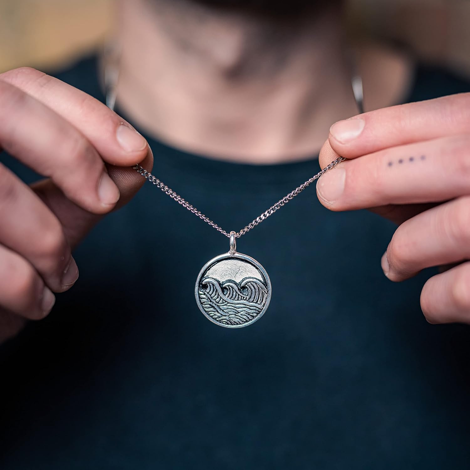 Made by Nami Mens Silver Necklace with Pendant Handmade 23" Surfer Cuban Link Chain with Stainless Steel Pendant Premium Jewelry Gift for Him