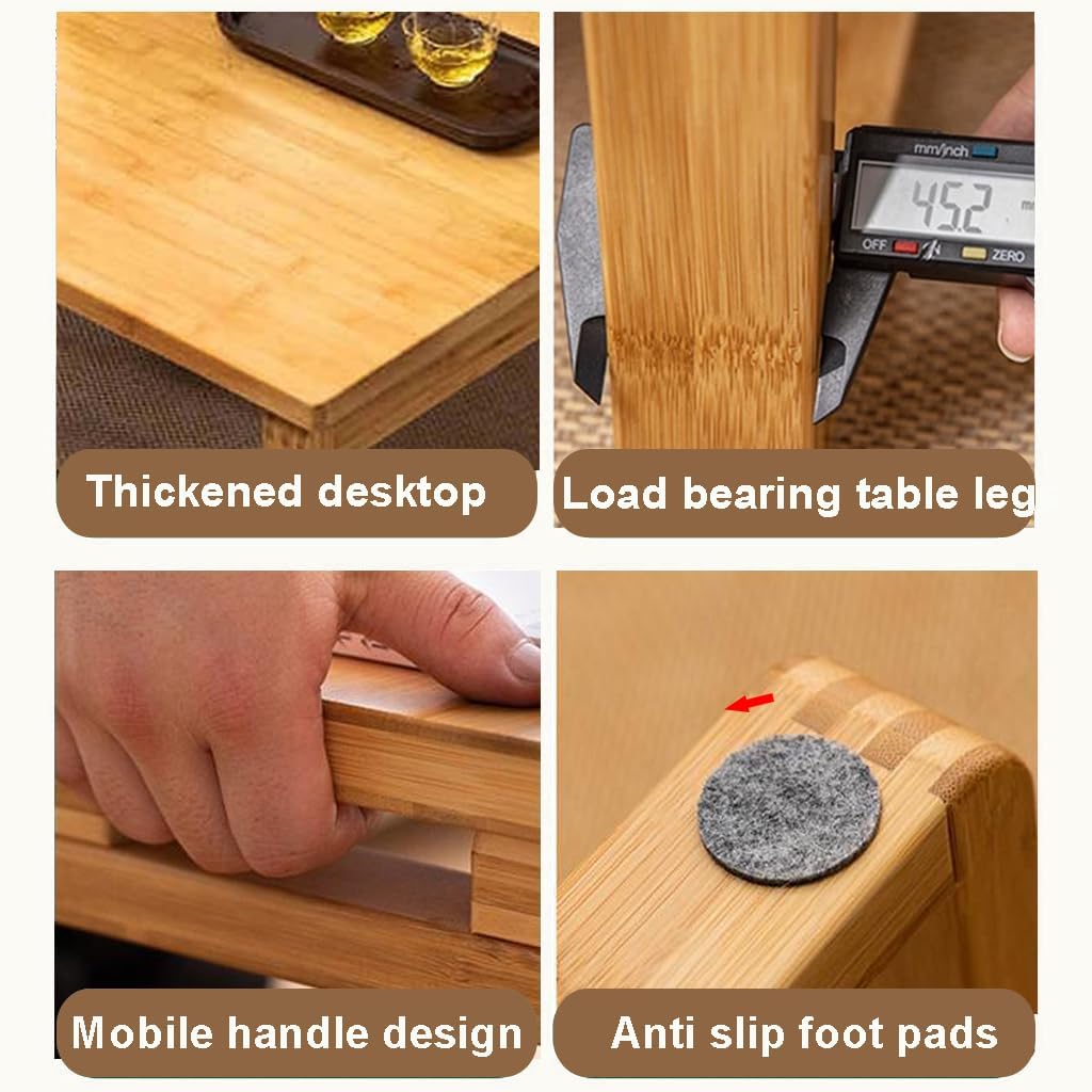 - ★【Table Leg Locking Design】: This bamboo low table comes with sturdy legs with locking design which could stop legs from folding inward itself to improve security and stability so that you could focus on working, studying or enjoying your eating.