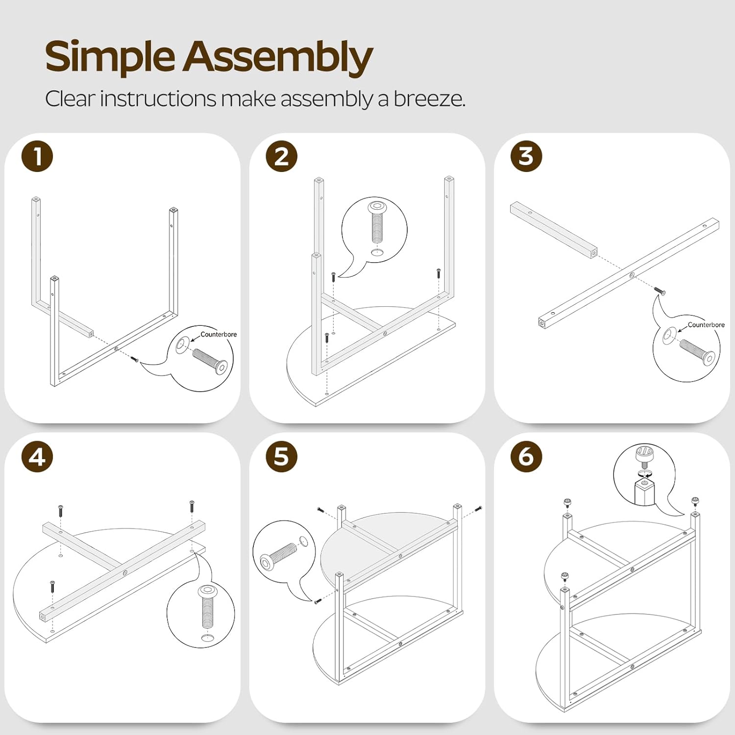 | Included Components | 1 x Accessory Package, 1 x Assembly Manual, 2 x Half Round Coffee Tables |