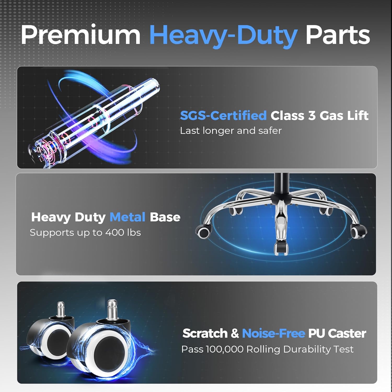 - 【Stable and Durable Construction】The frame of this oversized desk chair is made of sturdy metal, built to with stand the test of time, the heavy duty office chair features a 3-level gas lift and heavy duty metal base. This luxury office desk chair offers unwavering stability and eliminates the worry of gradual sinking. The backrest reclines from 90° to 150°, meeting the needs of work, reading, entertainment, and relaxation.