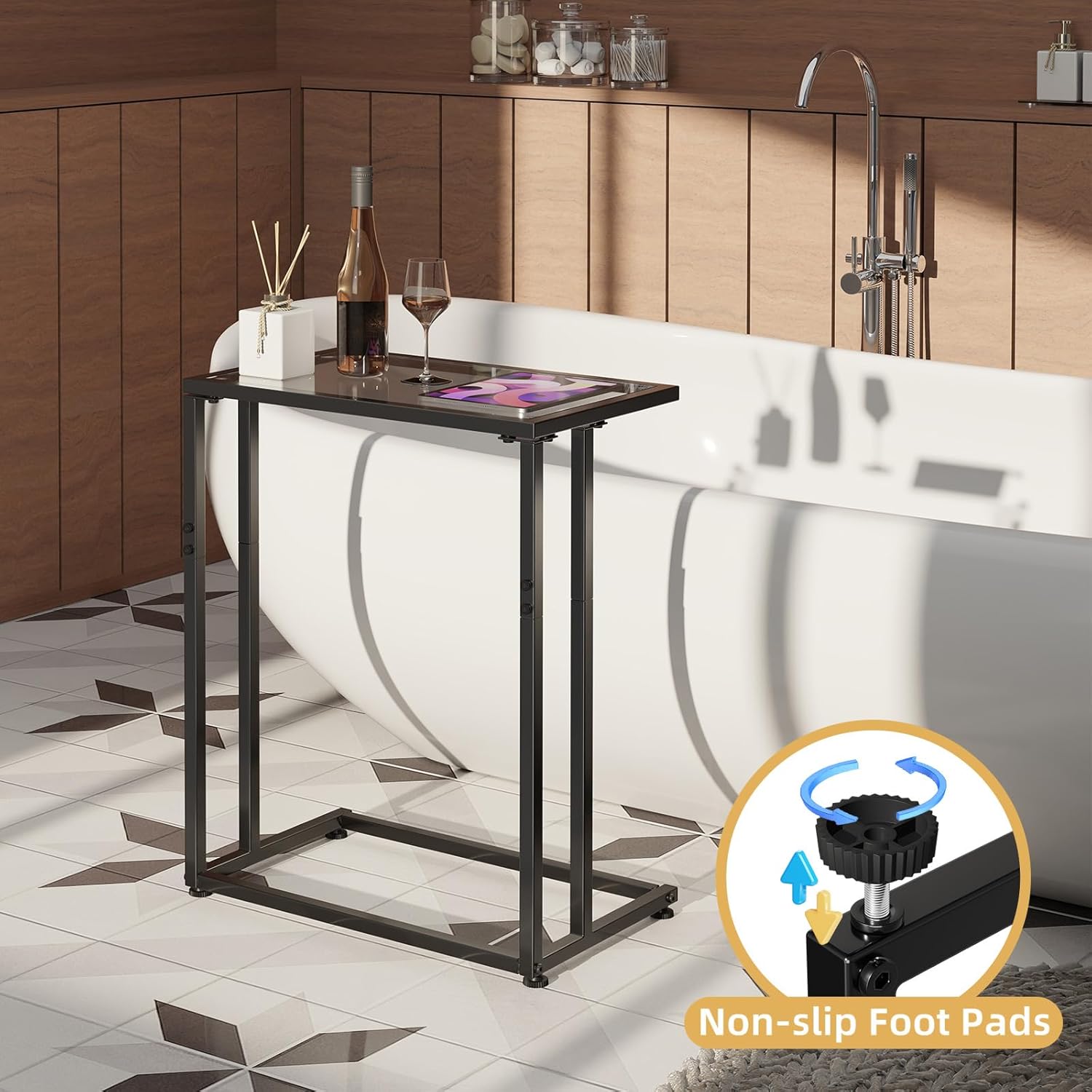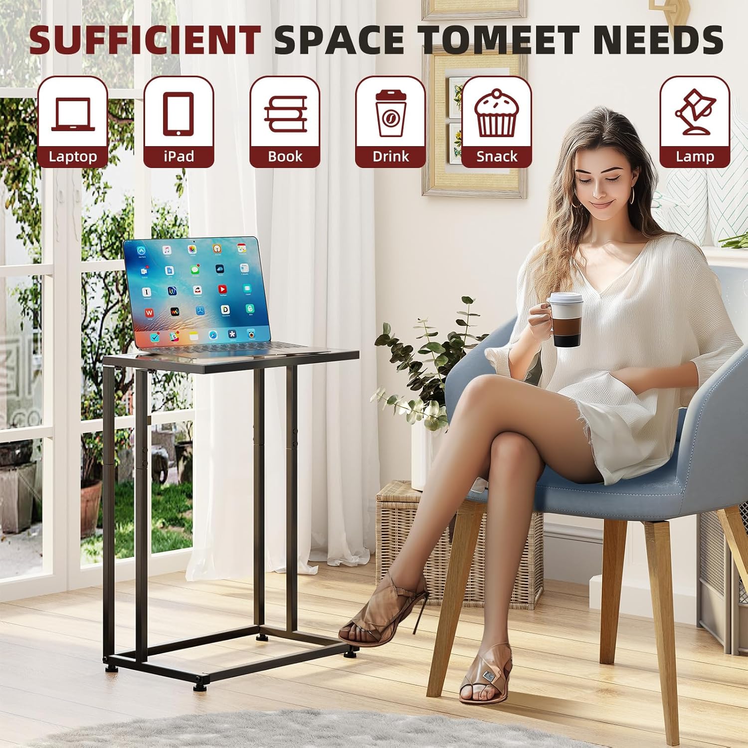 - C-Shaped Side Table: Ergonomic C-shape Table makes the table suitable to use as a bedside table, sofa side table, or a sturdy lap-free TV tray. Easy to slide your feet under the couch, sofa or bed, making snacks, coffee, remote control,mobile phone,laptop and books easier to get.
