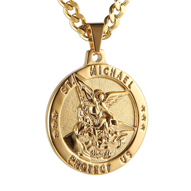 HZMAN St Michael The Archangel Catholic Medal Stainless Steel Amulet Pendant Necklace 22+2" Rolo Curb Chain