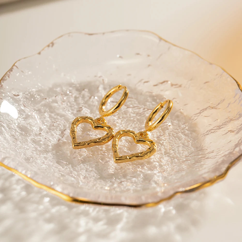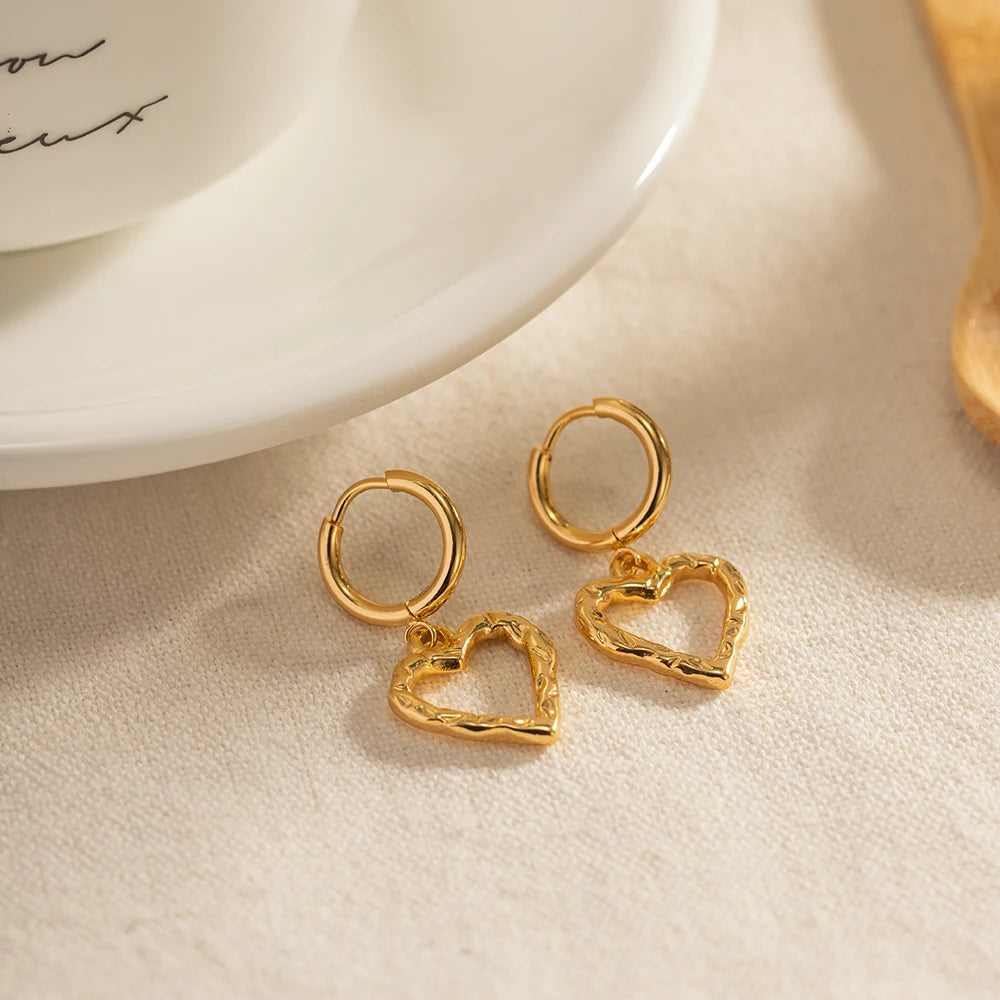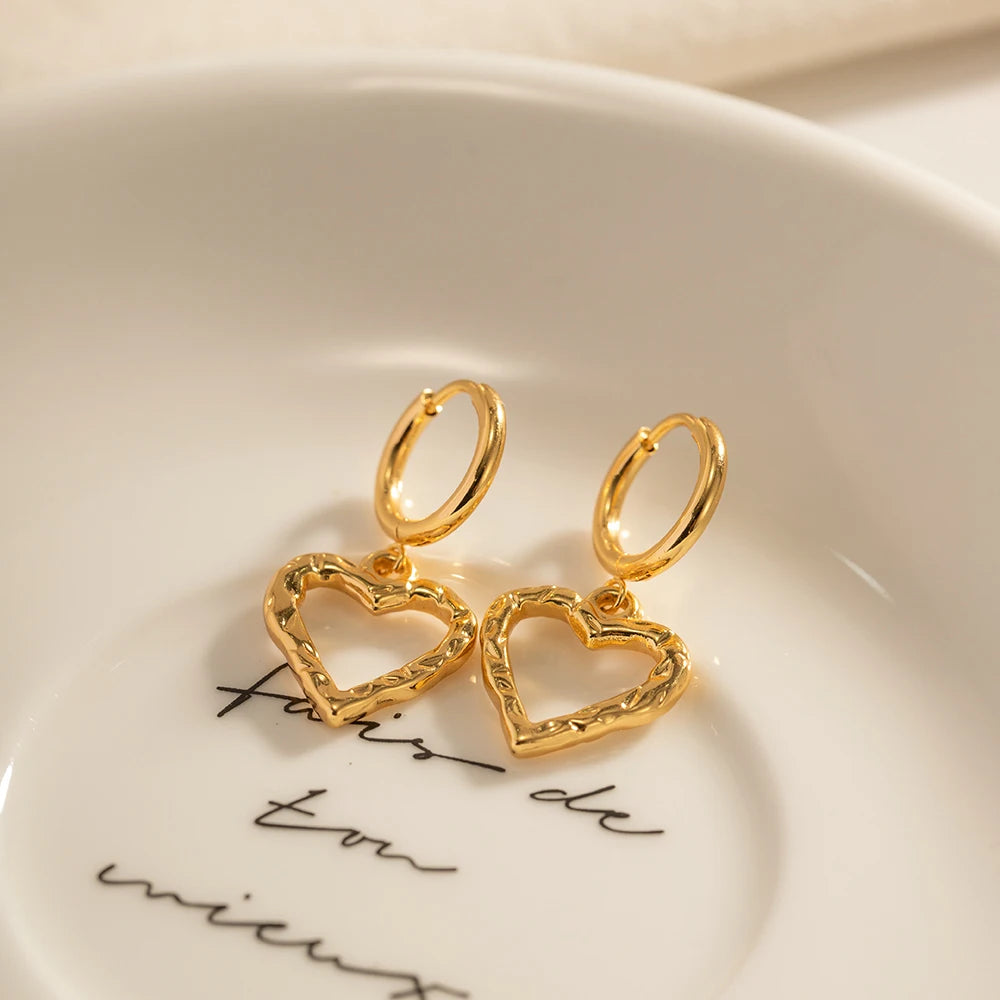 Pendientes colgantes de corazón de acero inoxidable con diseño hueco para mujer Joyería creativa de amor impermeable Regalo de vacaciones