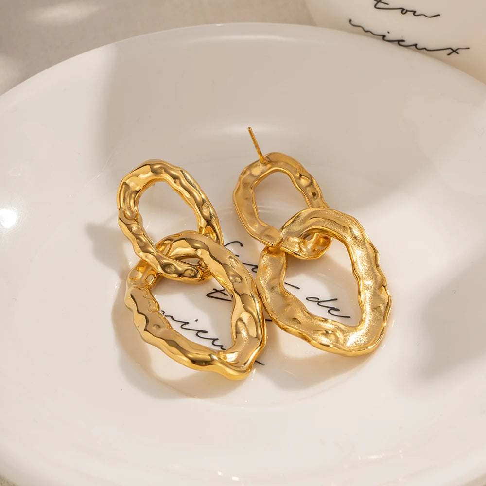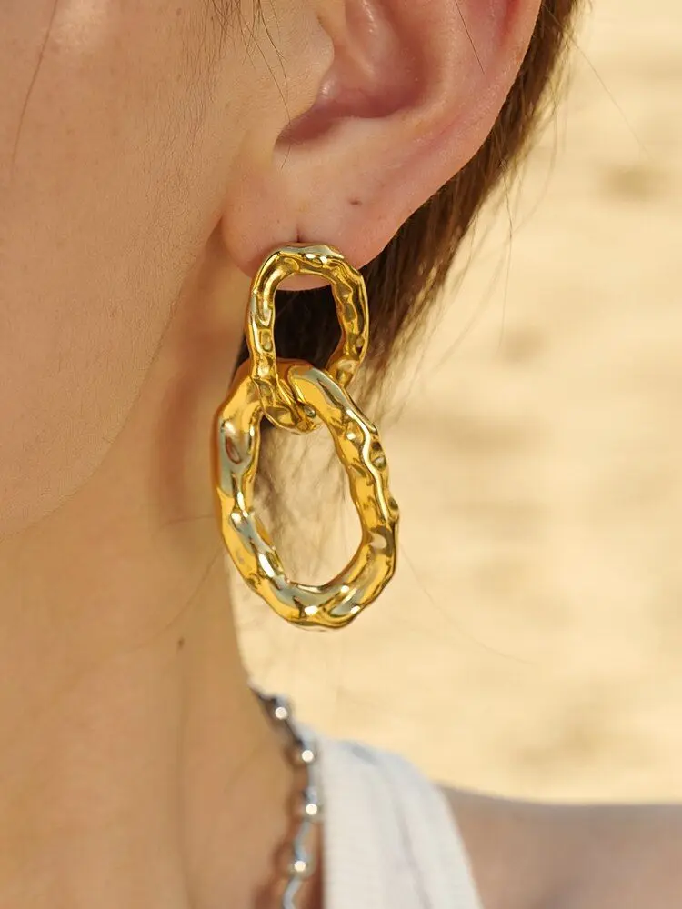 Nuevo Trenzado de Fundición a la Moda Exagerado de Acero Inoxidable Chapado en Oro de 18K Pendientes de Aro Elípticos con Encanto para Dama de Moda