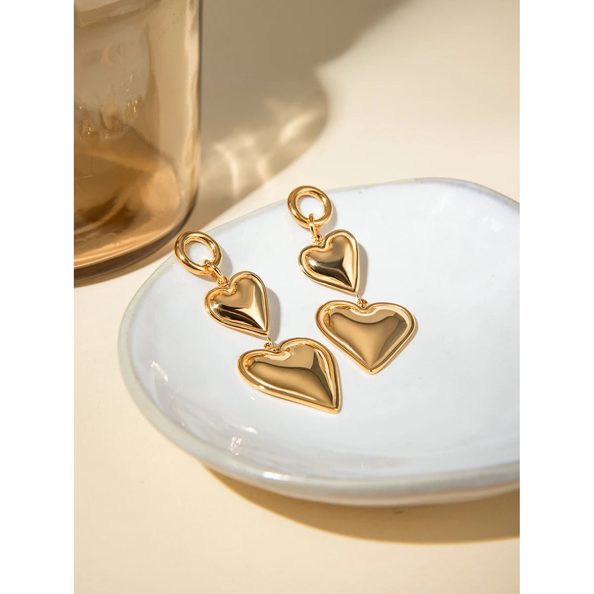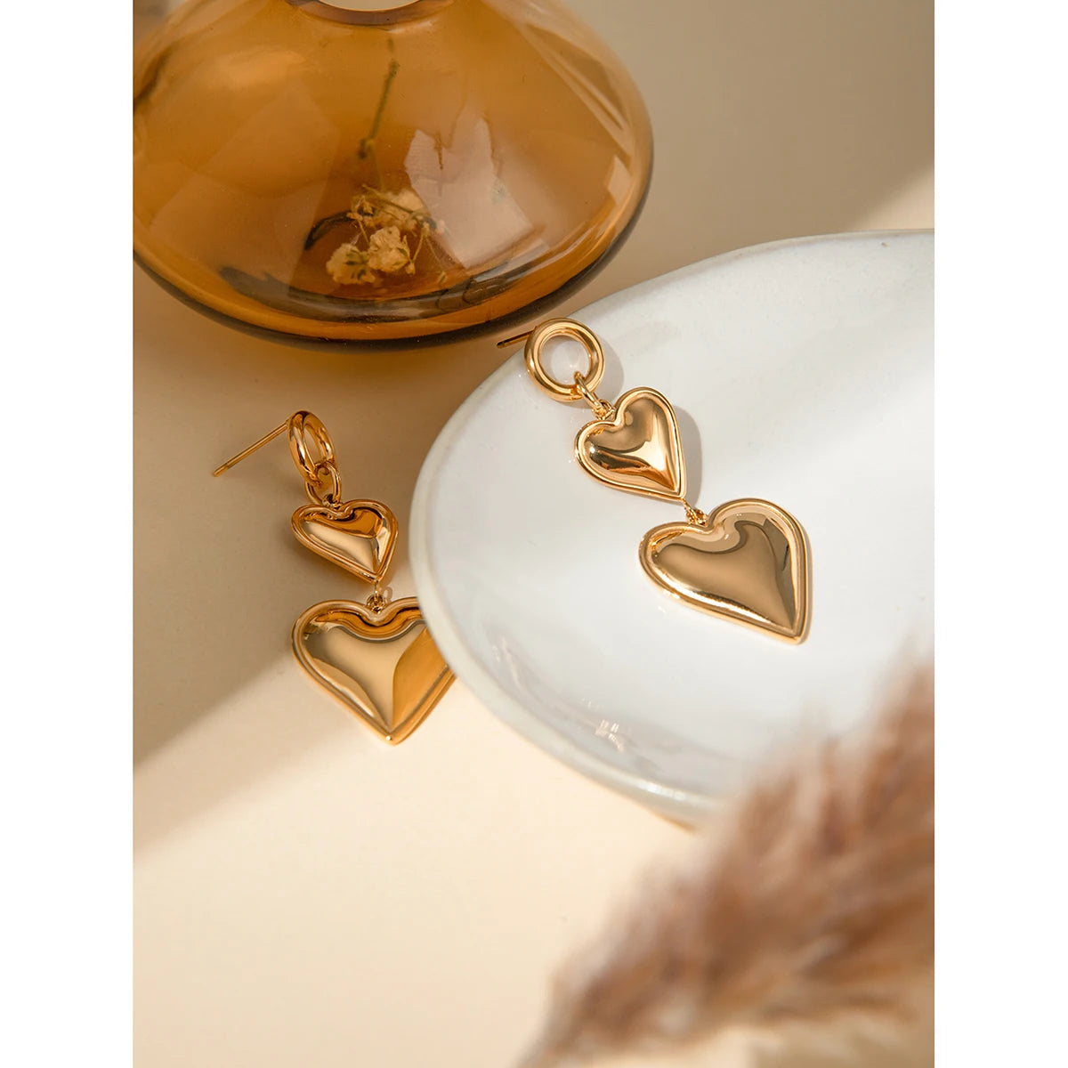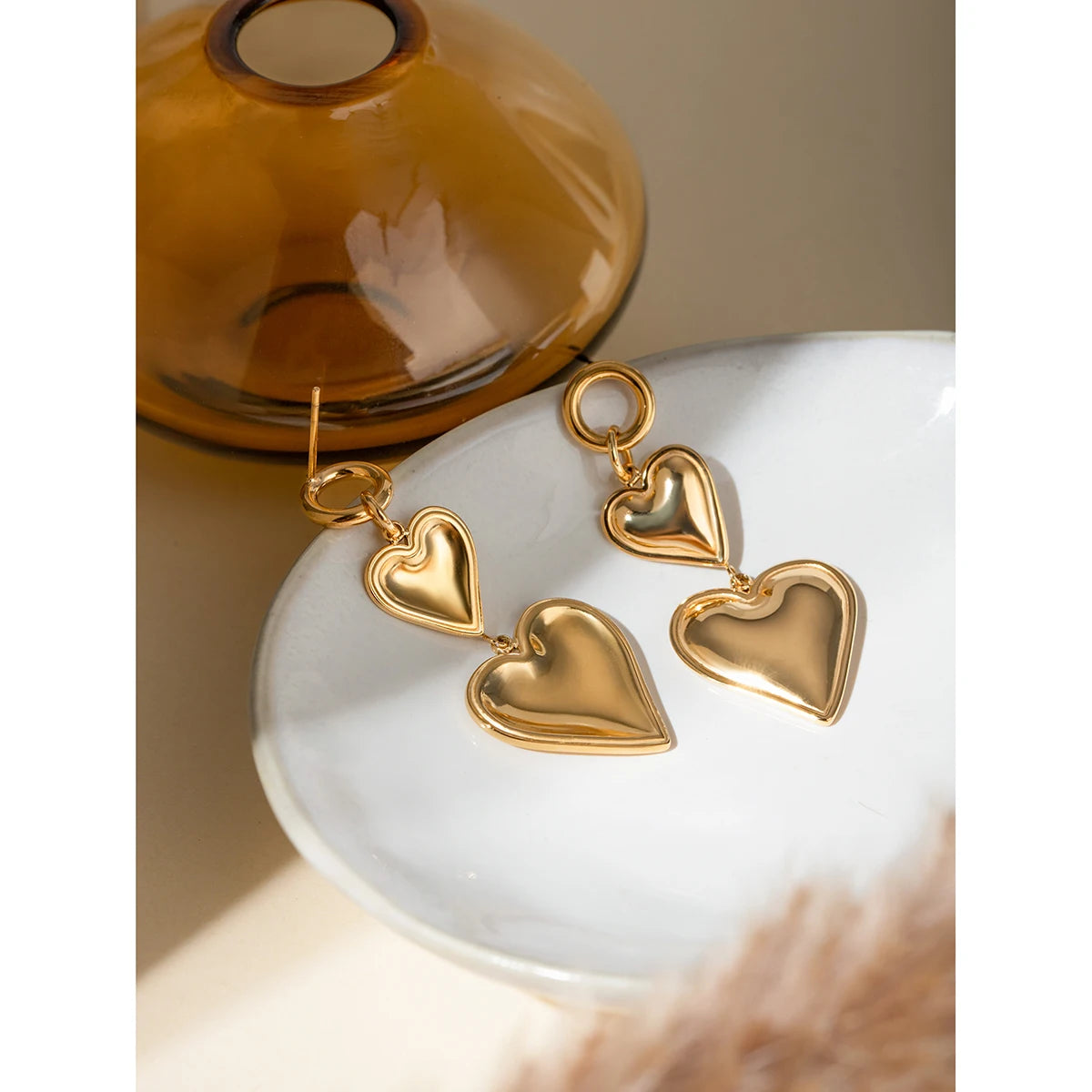Pendientes colgantes de doble corazón de amor chapados en oro de 18K de acero inoxidable, joyería de alta calidad para mujer, declaración a prueba de deslustre, regalo