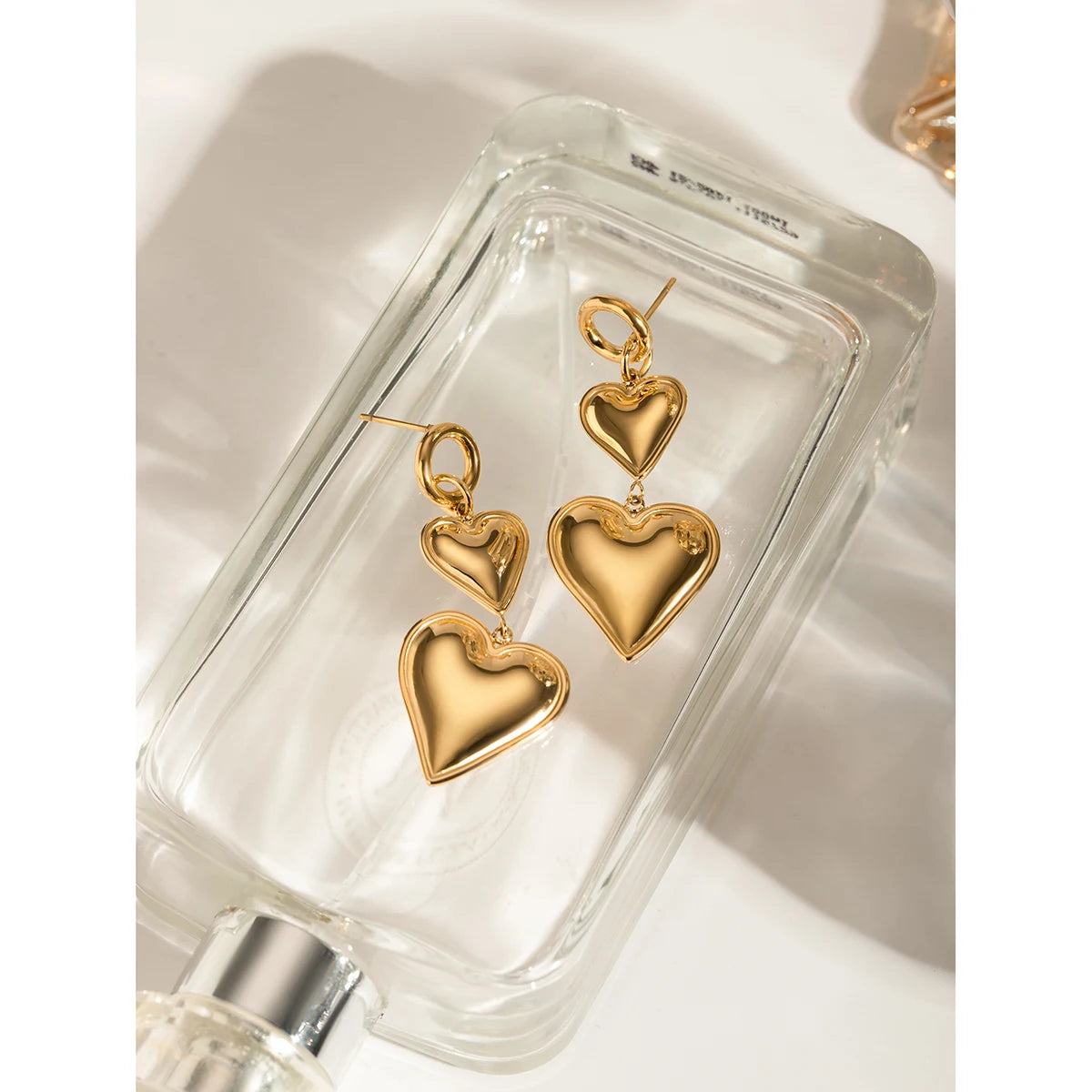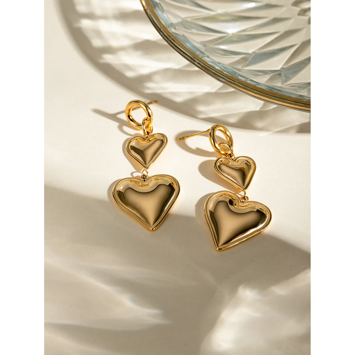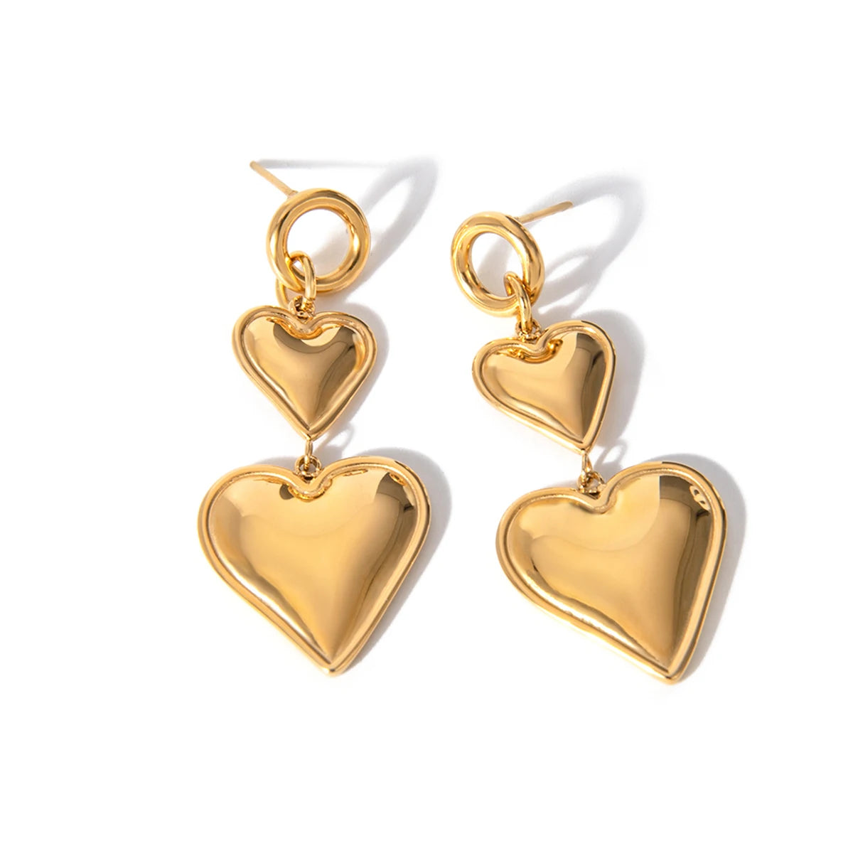 Pendientes colgantes de doble corazón de amor chapados en oro de 18K de acero inoxidable, joyería de alta calidad para mujer, declaración a prueba de deslustre, regalo