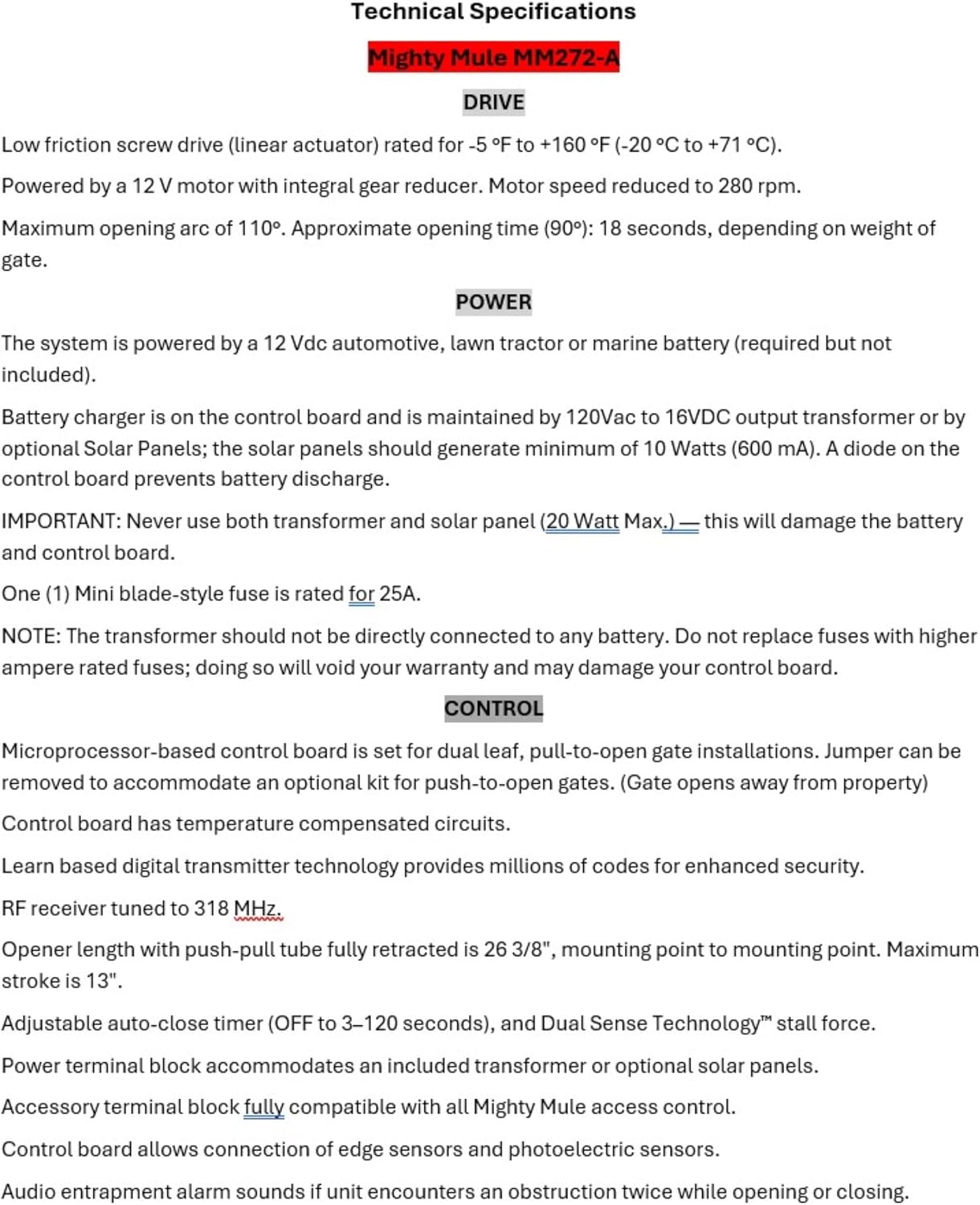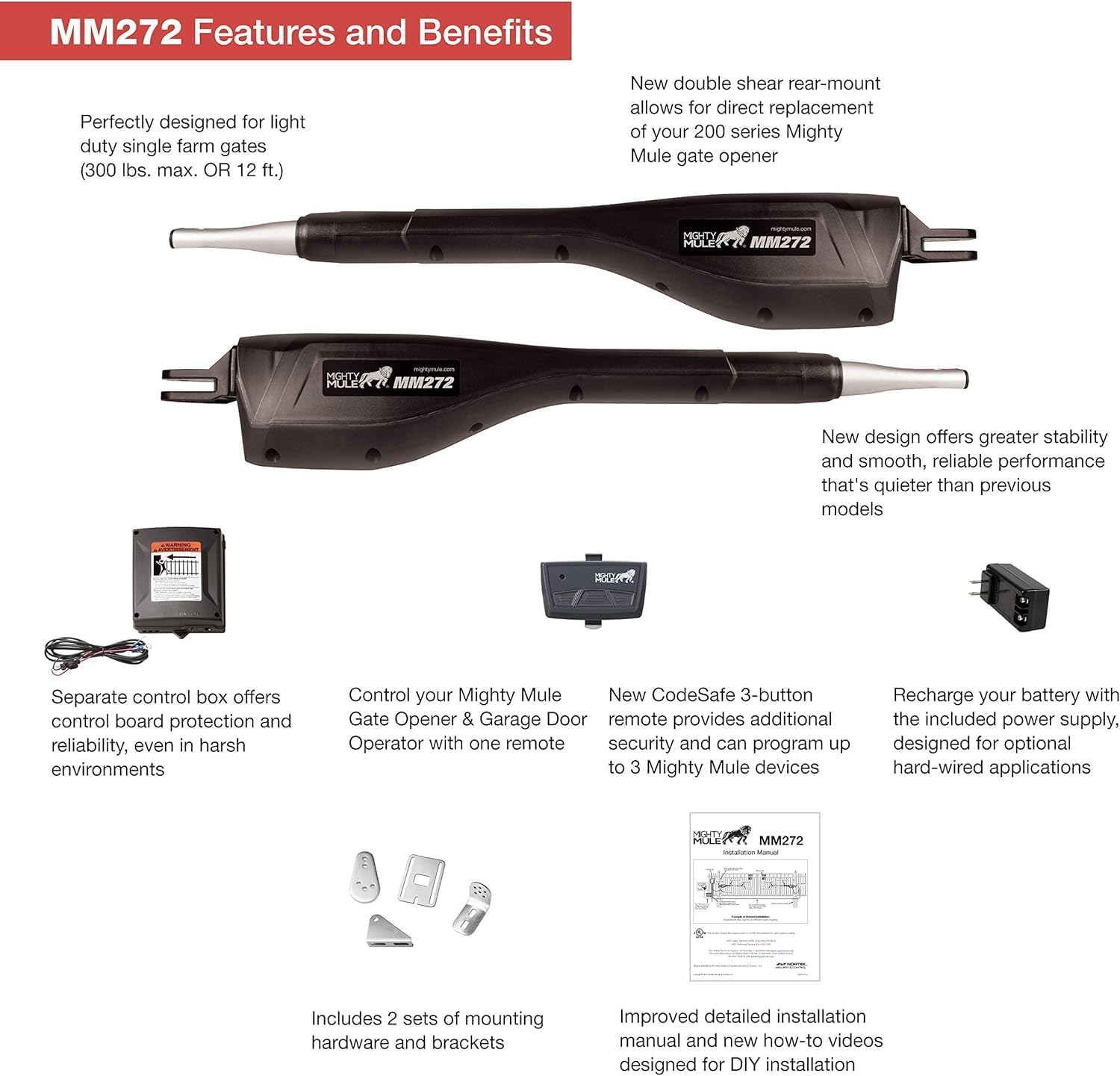 Mighty Mule Gate Opener, Solar Ready, Automatic Gate Opener for Dual Swing Gates up to 300lb or 12ft, with Precision Installation Ruler, Upgraded Kit, MM272-A