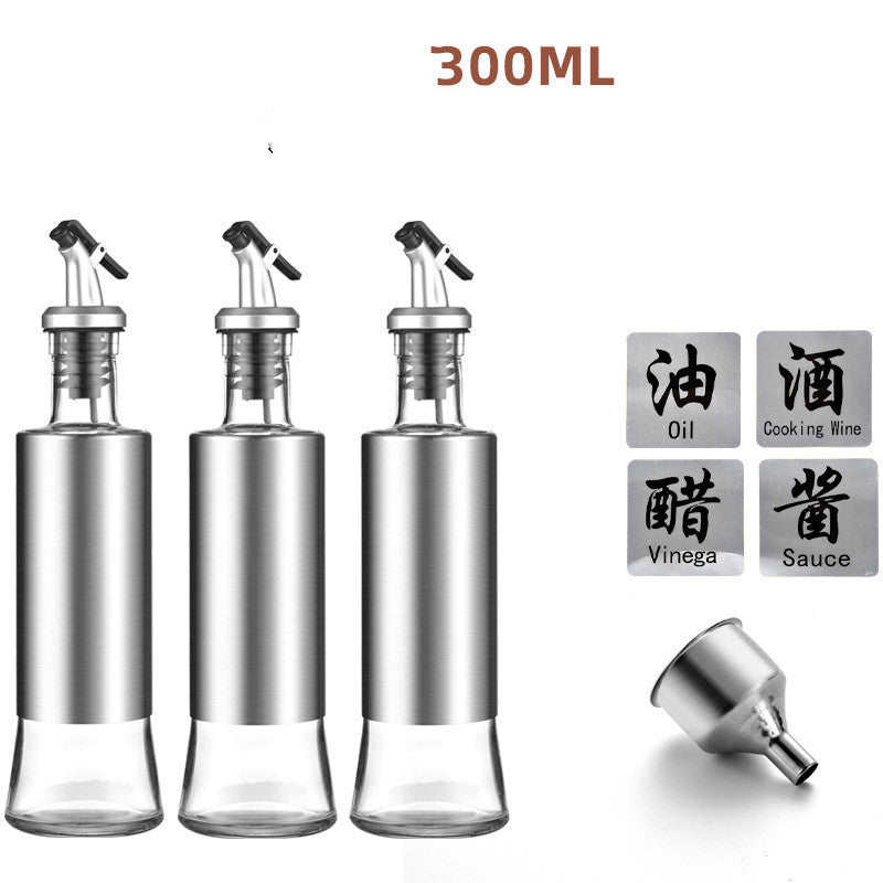 4style stainless steel glass oil bottle 3pcs + sticker 1 + funnel
