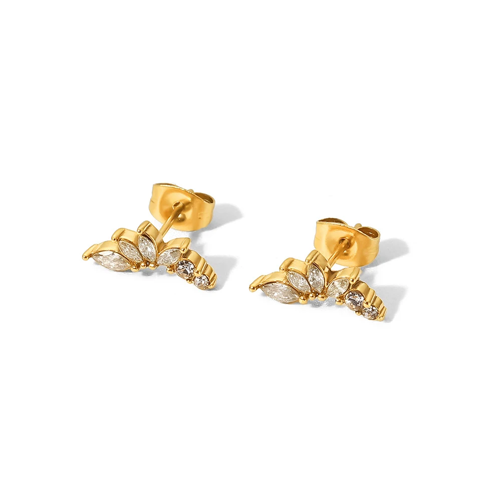 Pendientes de flor de acero inoxidable chapados en 18 K con incrustación de circonio, metal dorado, encanto, joyería de verano, accesorios impermeables, bijouterie para mujer